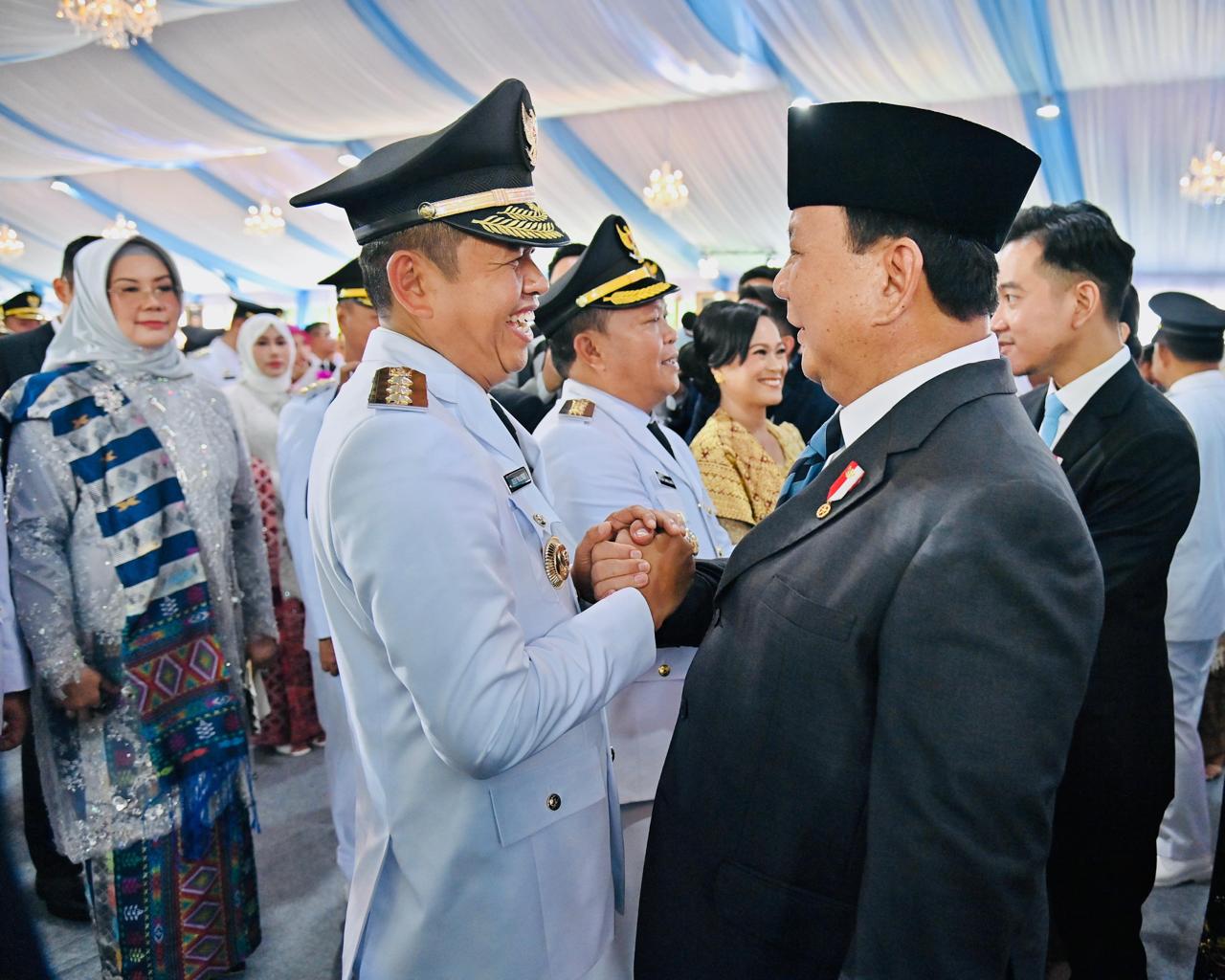 Secara khusus, pada pelantikan ini, Presiden Prabowo memberikan ucapan selamat kepada seluruh kepala daerah yang dilantik beserta pendamping secara langsung.
