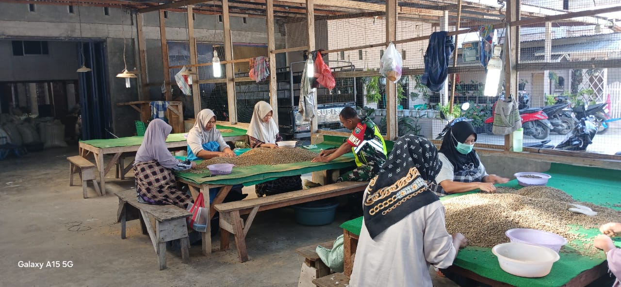 Mempererat Silaturahmi, Babinsa Koramil 03/Pegasing Komsos Dengan Penyortir Biji Kopi