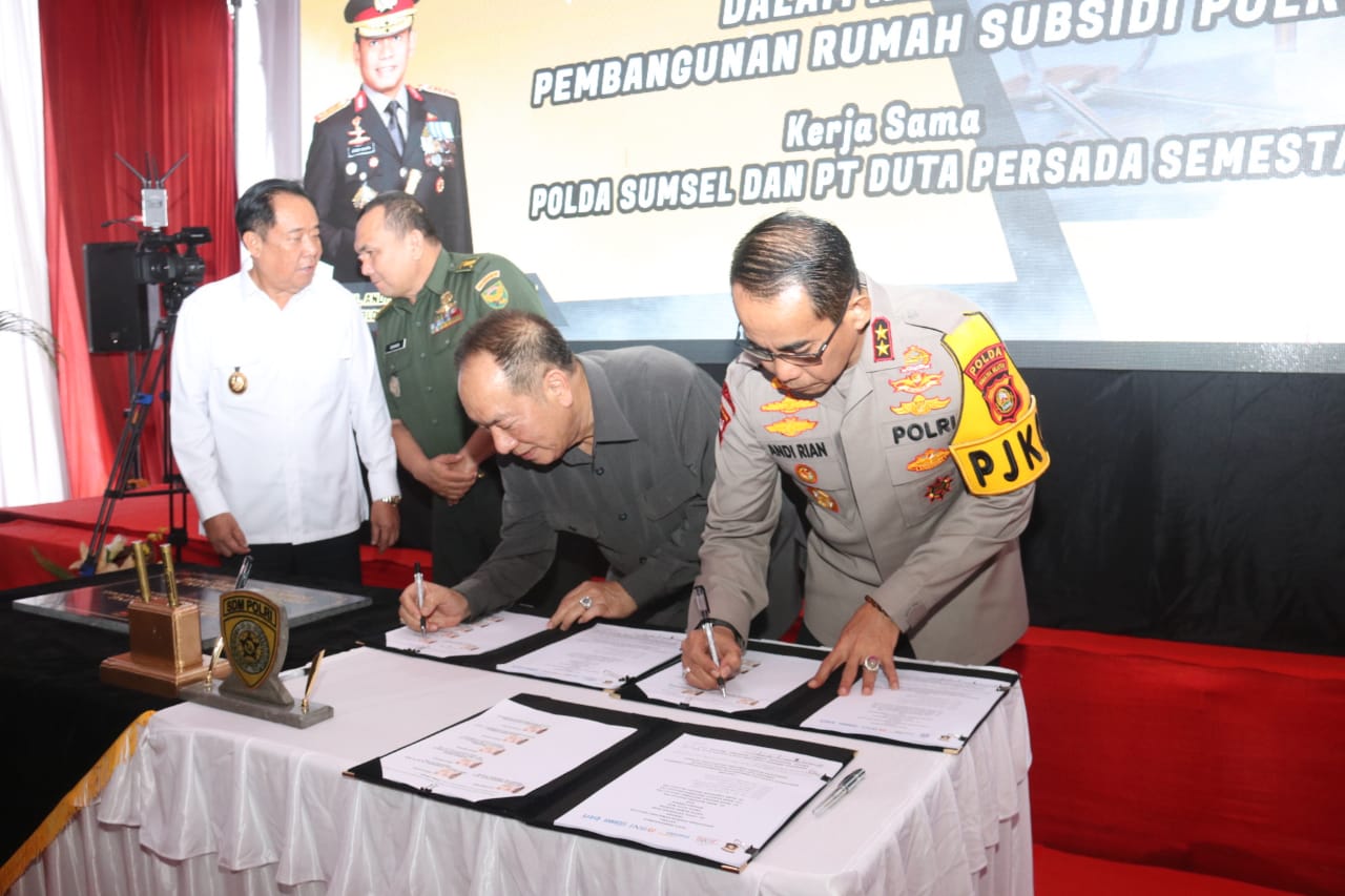 A1news.co.id|Palembang – Kepala Kepolisian Daerah (Kapolda) Sumatera Selatan (Sumsel) , Irjen Pol Andi Rian Djajadi, SIK, MH bersama Pejabat Utama dan Dinas terkait melaksanakan kegiatan peletakan batu pertama Perumahan Bersubsidi untuk anggota Polri di Perumahan Duta Tanah Mas Kecamatan talang kelapa Kabupaten Banyuasin , Selasa, 4 Maret 2025.