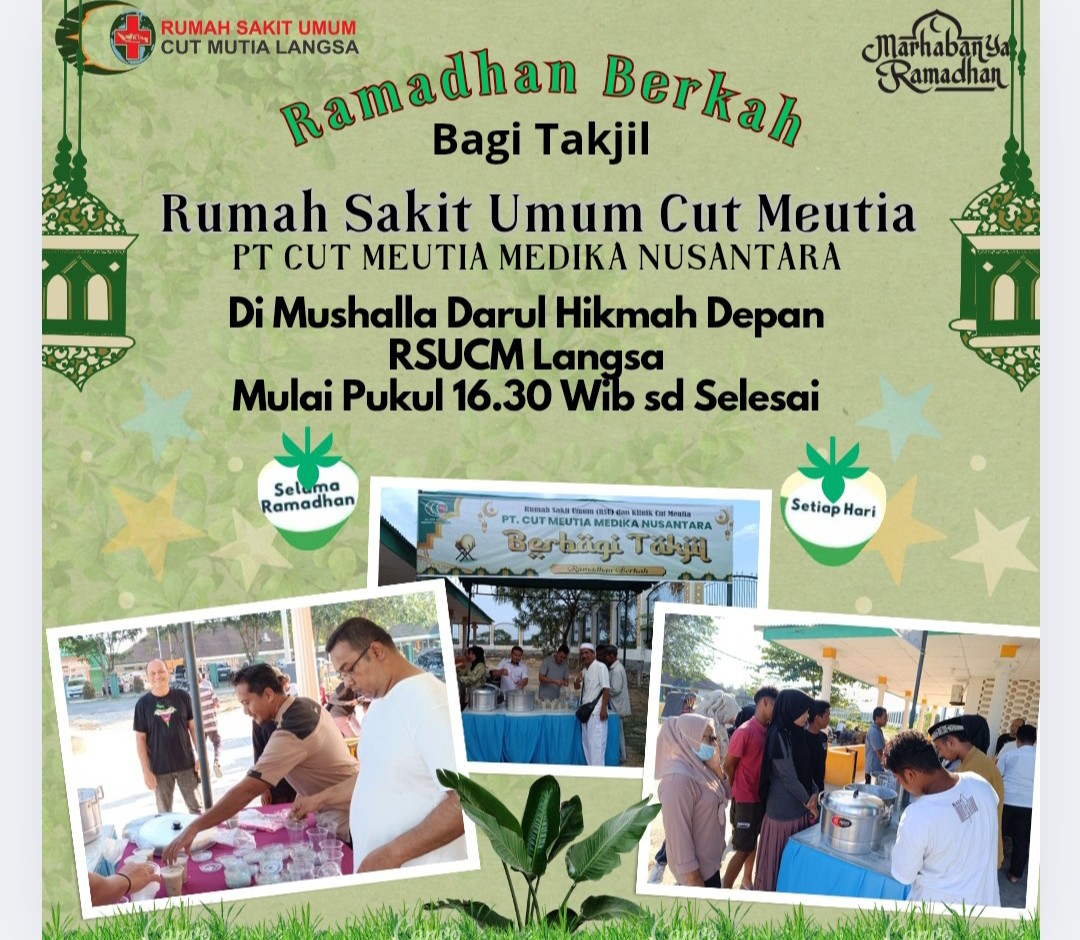 Kota Langsa – Rumah Sakit Umum Cut Meutia (RSUCM) Langsa PT Cut Meutia Medika Nusantara (PT CMN) mencari keberkahan dengan berbagi takjil bubur kanji selama bulan suci ramadhan 1446 H.