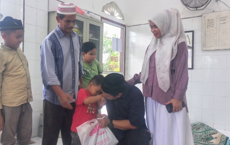 Pj Geuchik Gampong Sungai Pauh Firdaus, Sudirman didampingi Pj Ketua PKK Gampong Mirda Amallia, S.Keb, Iman Dusun Tgk. Murdani, Kaur Pemerintah Nanda dan Kaur Kesra Putri, beserta 10 anak yatim yang terdiri dari 5 pria dan 5 wanita.