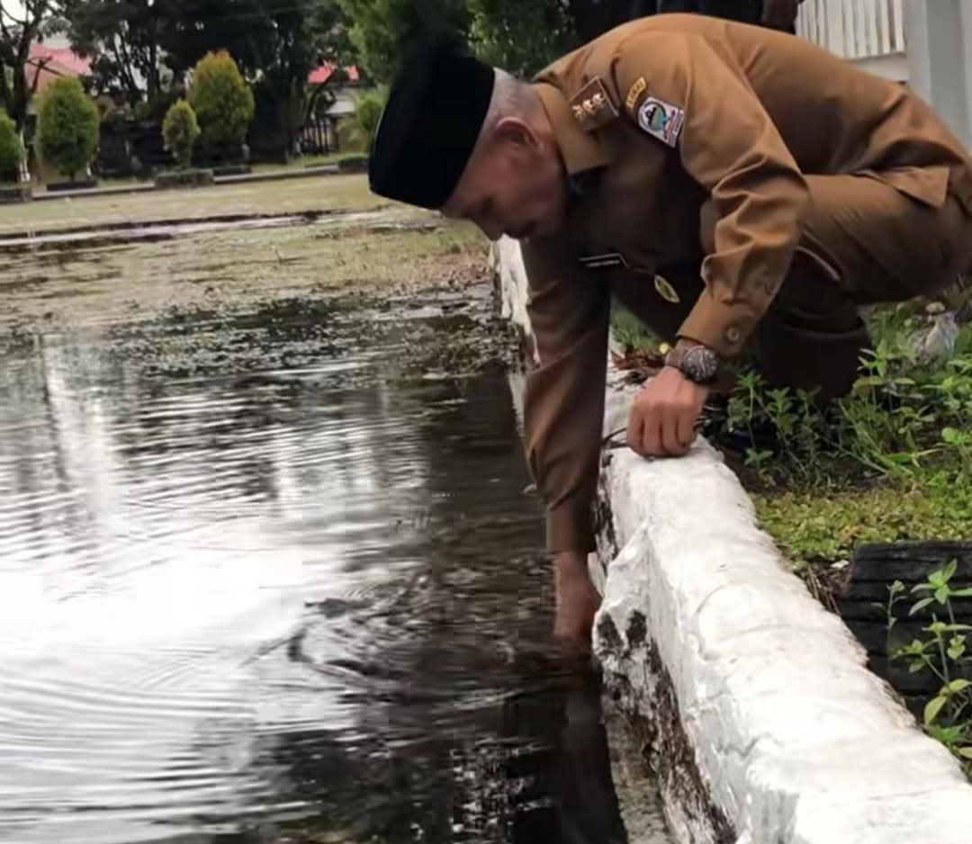 A1news.co.id|Aceh Singkil – Saat tiba di kantor Bupati, Wakil Bupati H. Hamzah Sulaiman, SH begitu kaget melihat halaman kantor yang kebanjiran.