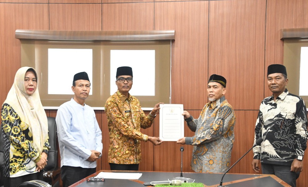 Kota Langsa – Penjabat (Pj) Walikota Langsa Dr. Syaridin, S.Pd M.Pd, menyerahkan Surat Keputusan (SK) untuk Direktur Perusahaan Umum Daerah Air Minum (Perumda AM) Tirta Keumuning dan Dewan Pengawas (Dewas) terpilih.