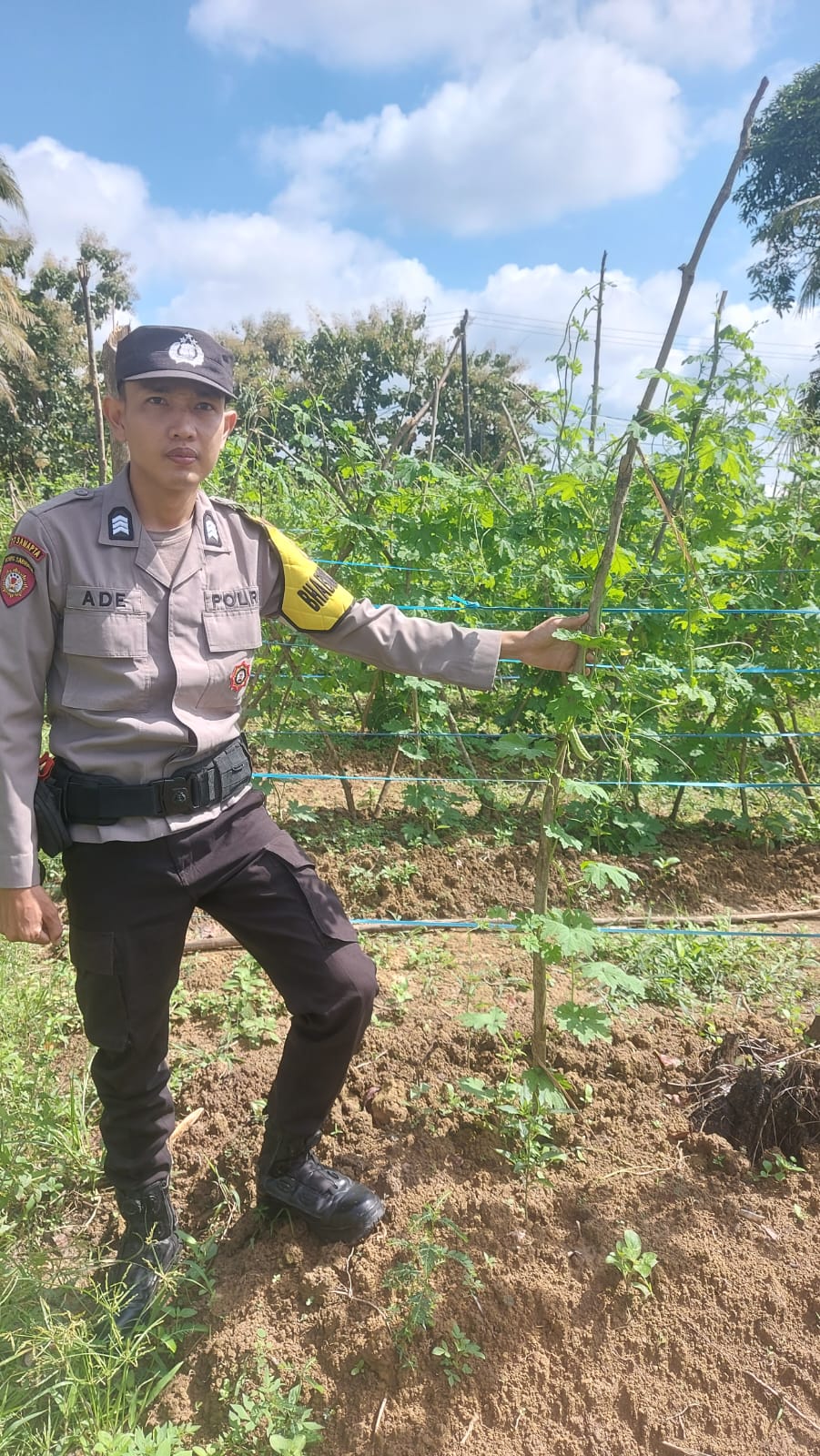 “Anggota kami bersama petani binaan, memantau langsung progres pertumbuhan tanaman sayur pare dan cabai,” ujar Kapolsek.