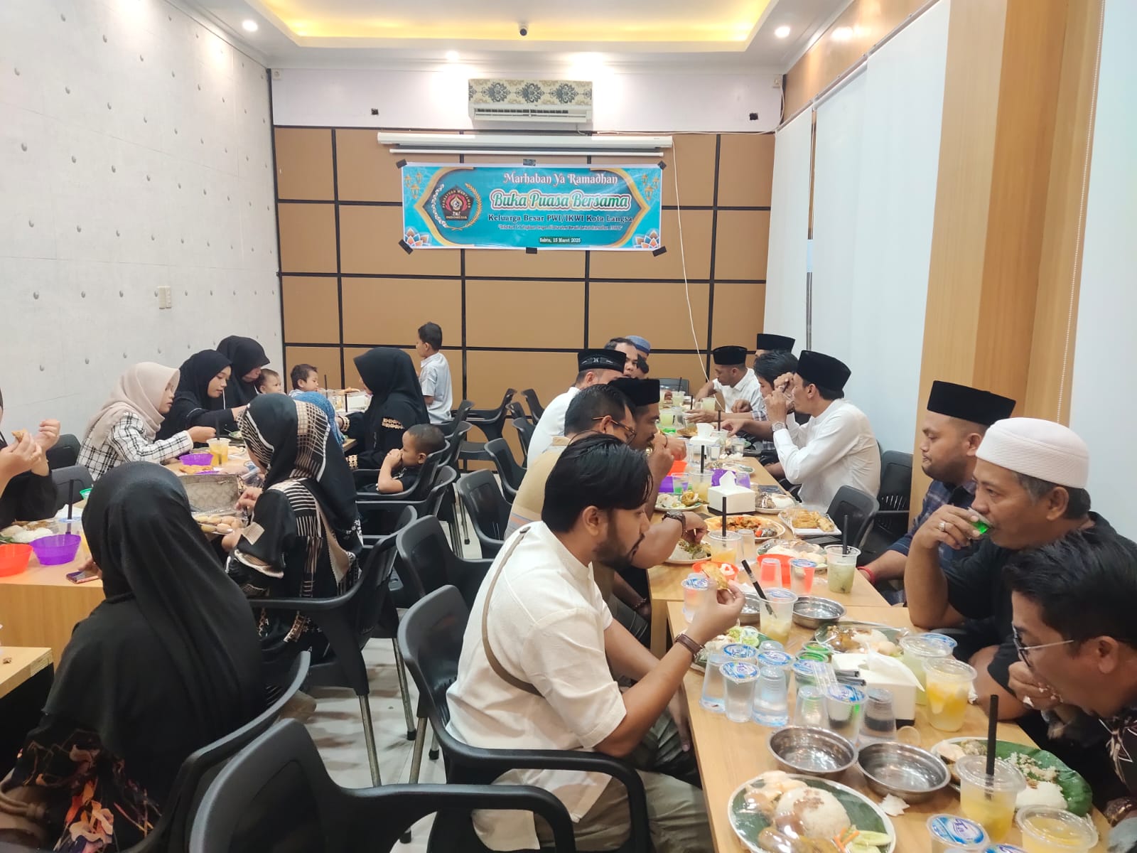 Buka puasa bersama seluruh keluarga besar PWI dan IKWI di Kopi Liqa, Jalan Jendral Ahmad Yani, Paya Bujok Seuleumak, Kecamatan Lansga Baro, Sabtu, 15 Maret 2025.