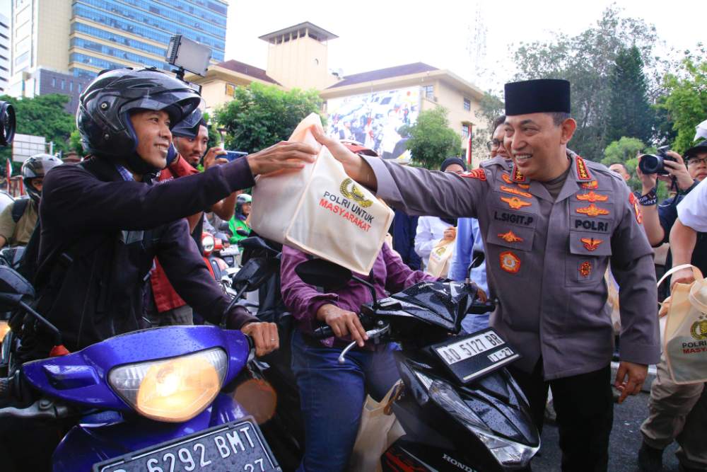 Jenderal Sigit pun membagikan ribuan takjil itu secara langsung di Jalan Trunojoyo, Jakarta Selatan, yang disambut antusias masyarakat.