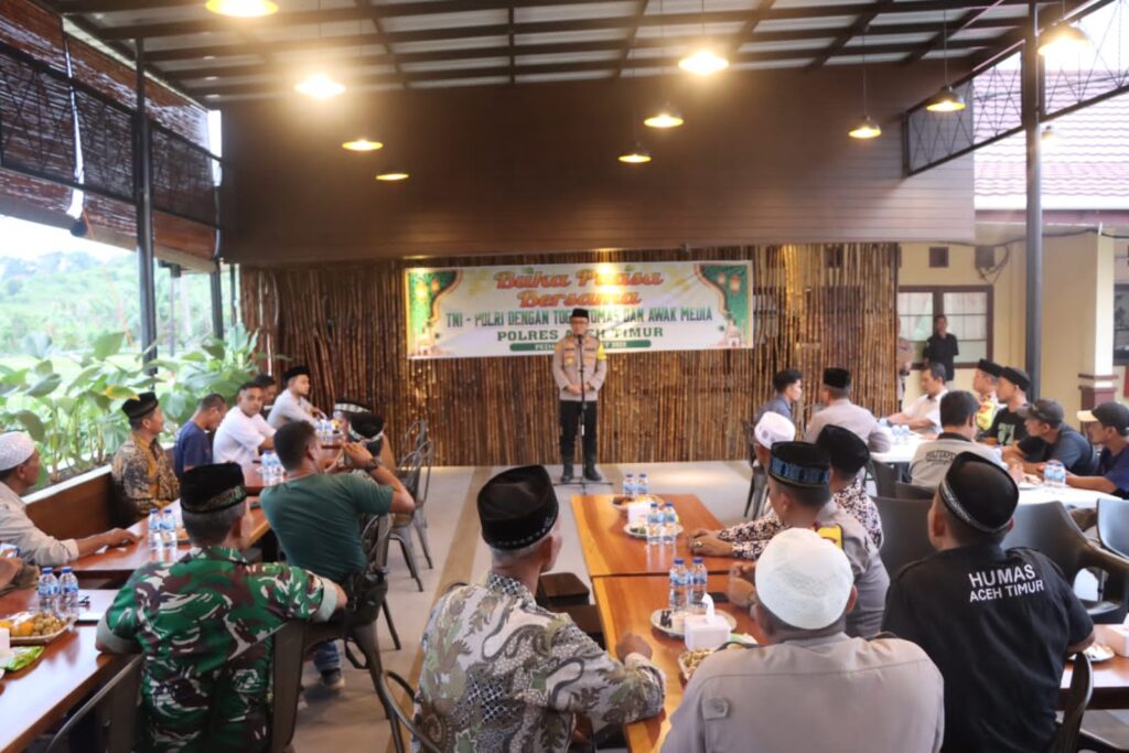 Aceh Timur – Dalam rangka mempererat sinergitas dan kebersamaan Lintas sektoral, Polres Aceh Timur Polda Aceh menggelar acara Buka Bersama dengan unsur TNI Kodim 0104 Aceh Timur, Tokoh Agama, Tokoh Masyarakat, Perangkat Gampong dan para Ketua organisasi wartawan dalam wilayah Kabupaten Aceh Timur, Kamis (20/03/2024).