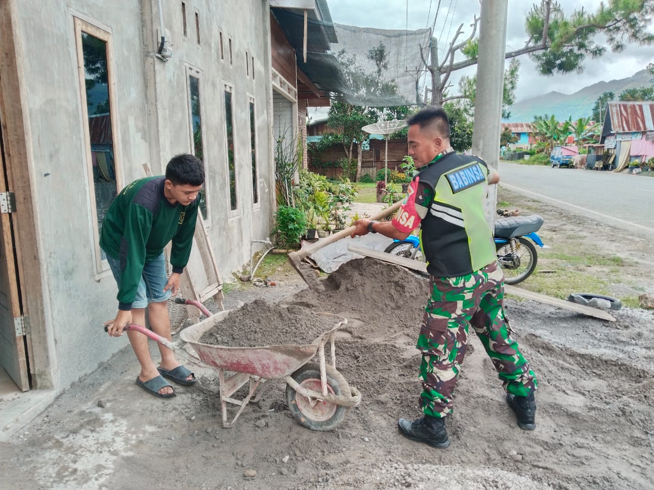 Seperti yang dilaksanakan Babinsa Koramil 06/Jagong Serka Bambang membantu pembangunan rumah warga binaan Sopiyan di Desa Jagong, Kecamatan jagong Jeget, Kabupaten Aceh Tengah. Jumat (21/03/25)
