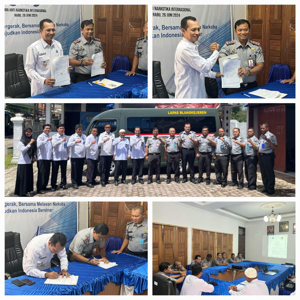 Kepala Lapas Kelas IIB Blangkejeren, Dekki Susanto, A.Md.IP., S.H., M.H., bersama Kepala BNNK Gayo Lues menandatangani perjanjian yang bertujuan untuk memperkuat sinergi dalam upaya pencegahan dan pemberantasan narkotika, khususnya di lingkungan Lapas.