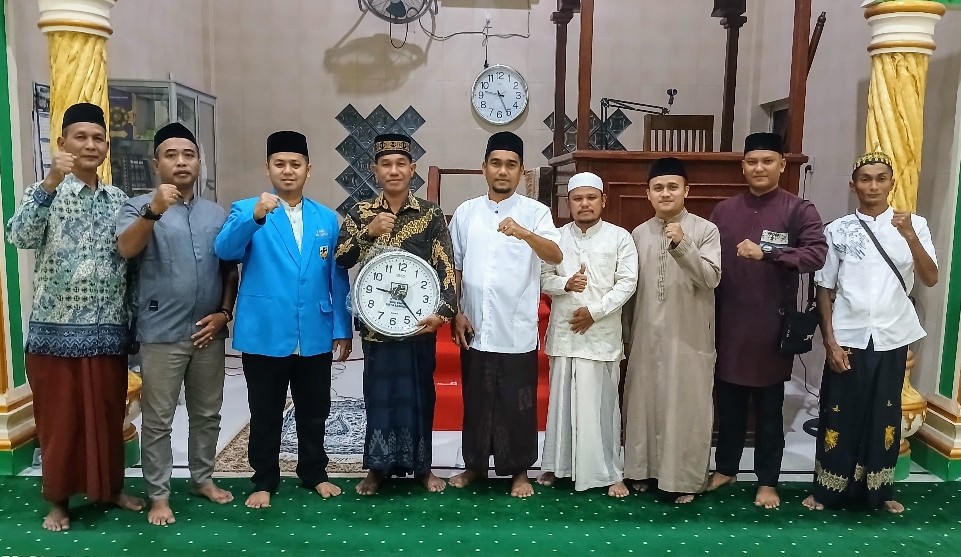 Usai tausiyah, Tim Safari Ramadhan DPD KNPI Kota Langsa memberikan cinderamata kepada pengurus Masjid setempat.