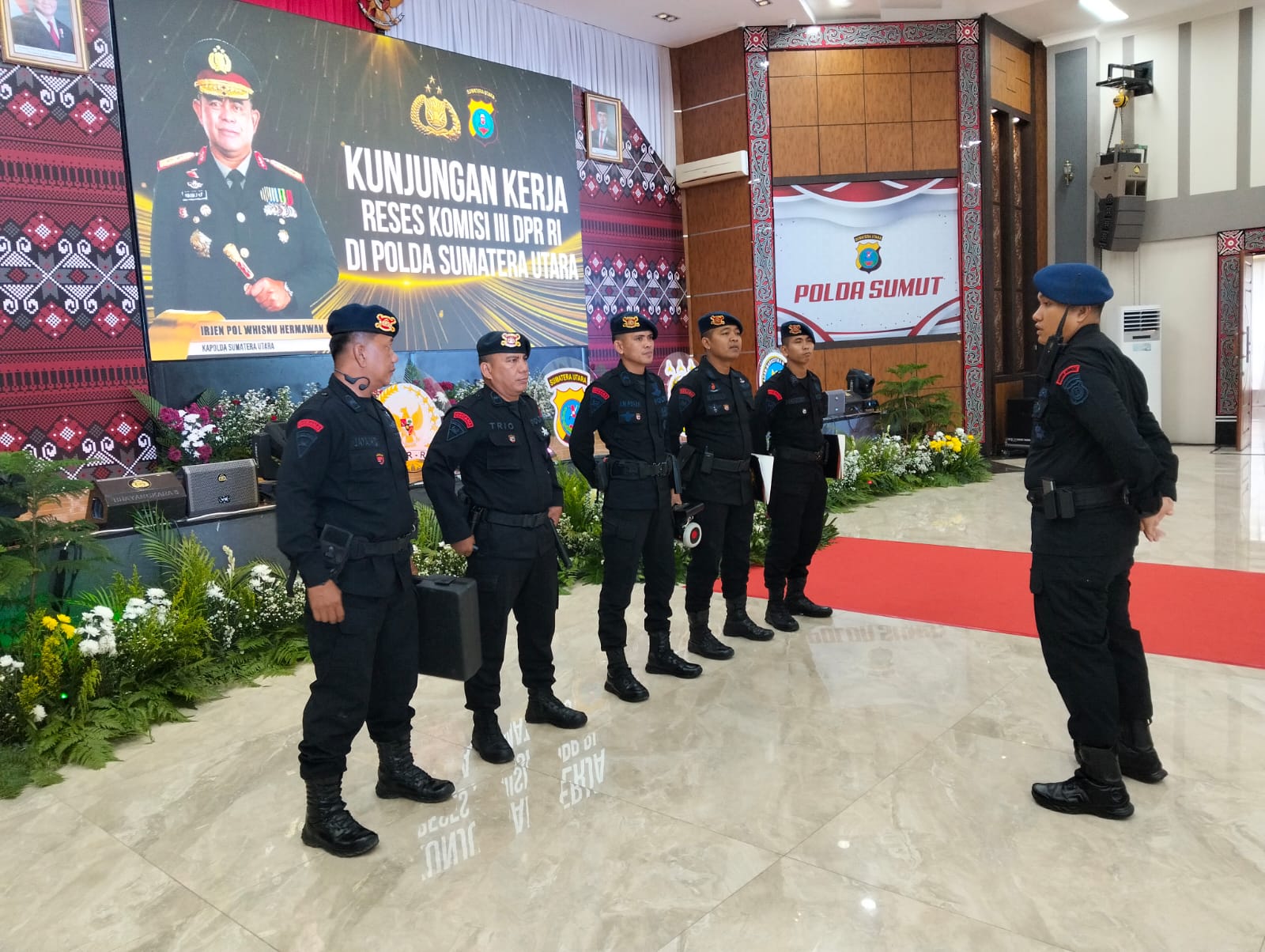 Tim Jibom KBR Detasemen Gegana Brimob Polda Sumut Lakukan Sterilisasi Kunjungan Kerja Komisi III DPR RI