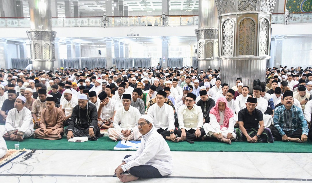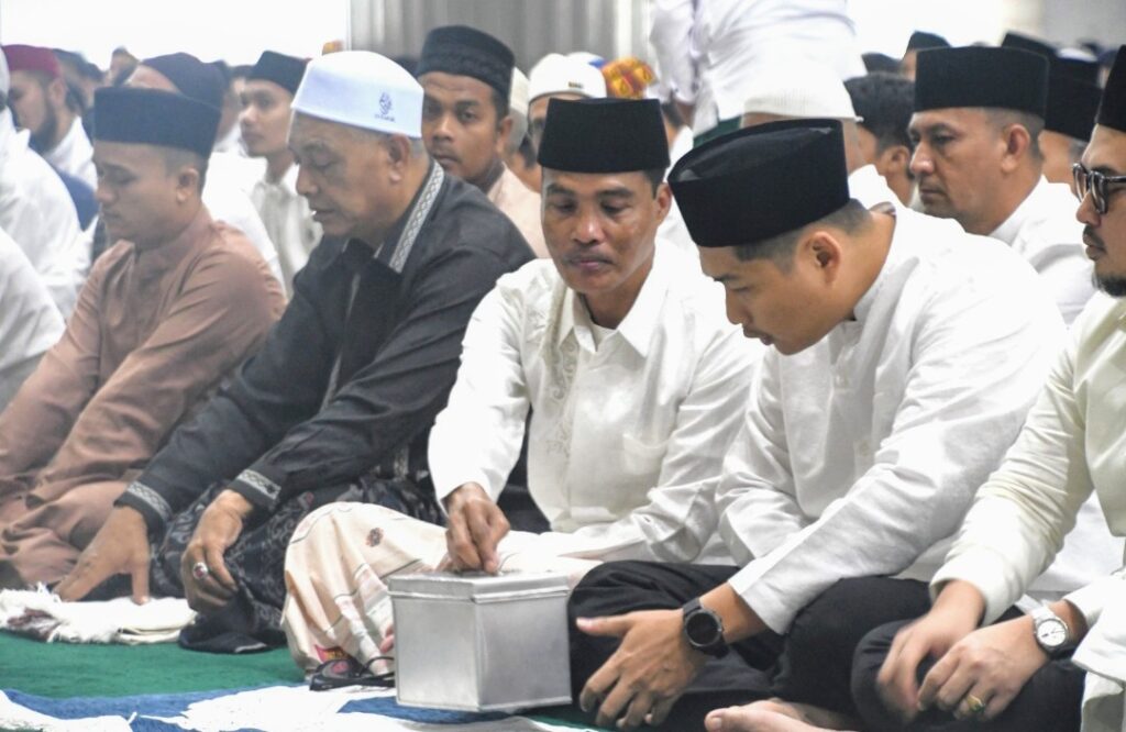 Kota Langsa – Penjabat (Pj) Walikota Langsa Dr. Syaridin S.Pd, M.Pd dan Wakil Walikota Terpilih Langsa Muhammad Haikal Alfisyahrin, ST, shalat hari raya Idul Fitri 1446 Hijriah di Masjid Agung Darul Fallah.