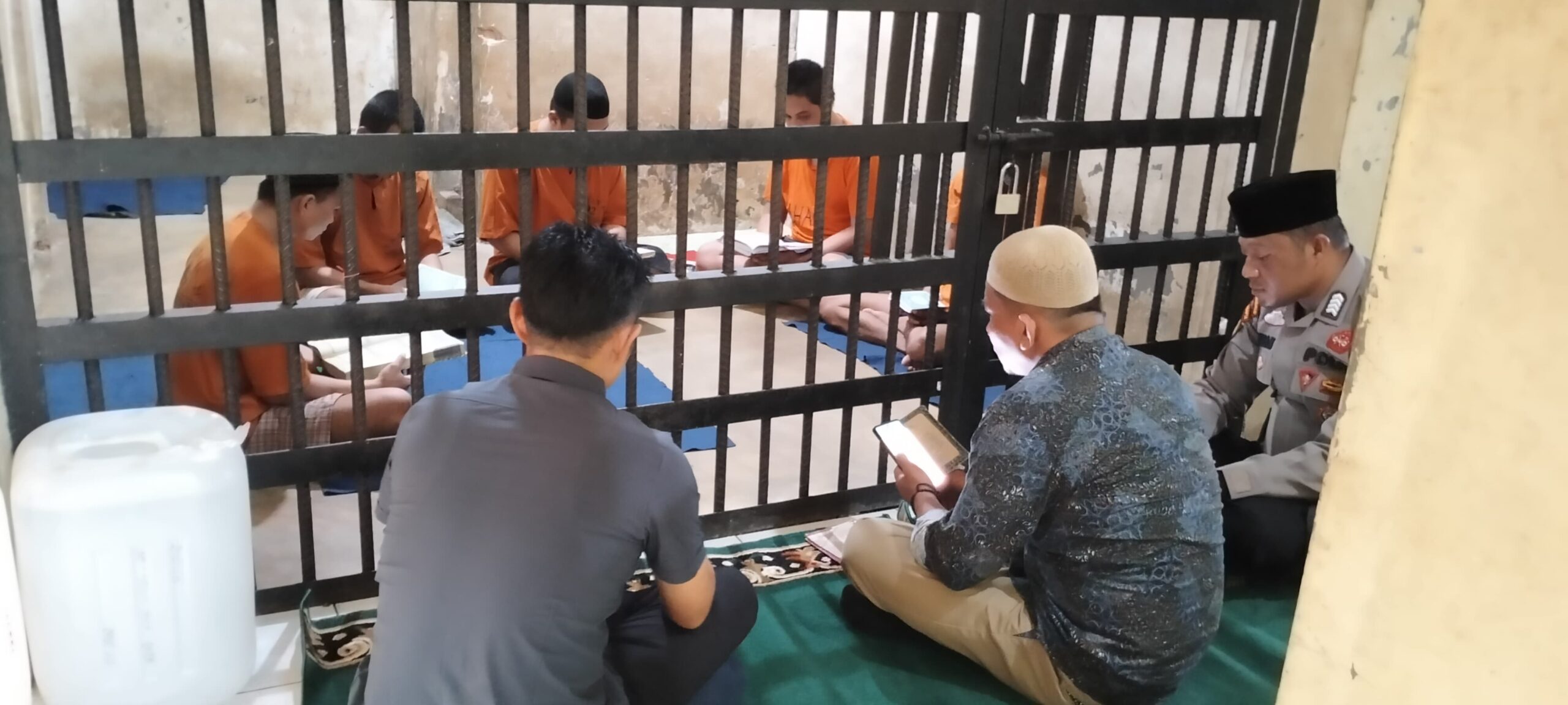 A1news.co.id|Kampar – Kepolisian sektor perhentian Raja Polres Kampar melaksanakan kegiatan Pembinaan Rohani dan Mental di sel Tahanan polsek yang dimulai pada pukul 08.30 WIB yang dipimpin oleh Kanit Reskrim bersama personil polsek ,Pada hari Jumat (25/4/25).