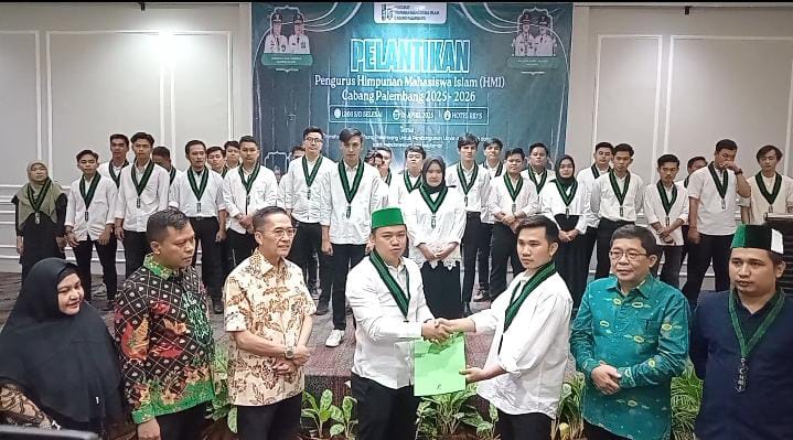 A1news.co.id|Palembang – Pelantikan pengurus Himpunan Mahasiswa Islam (HMI), Cabang Palembang periode 2025 sampai 2026.