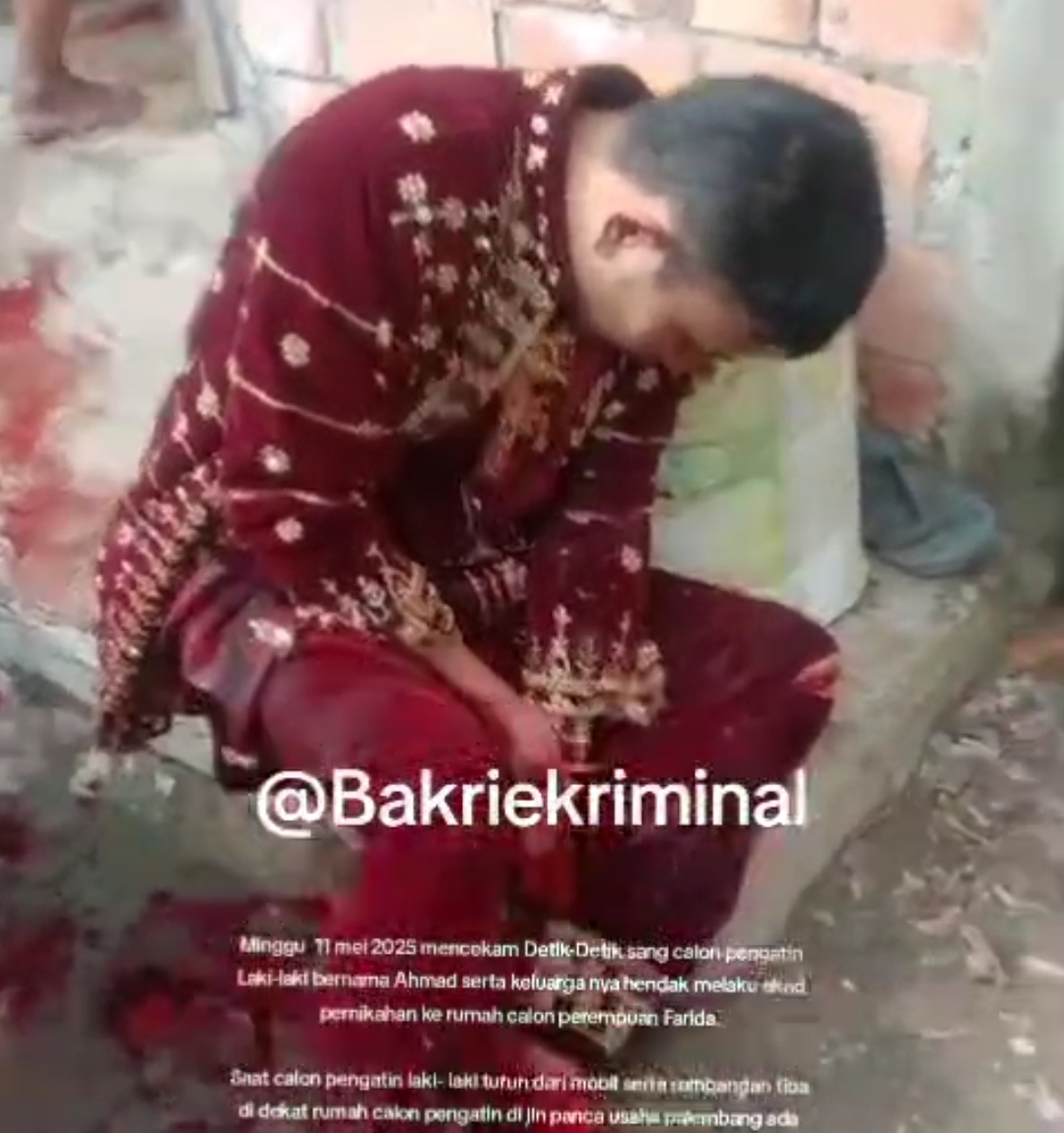 Saat calon pengantin laki- laki turun dari mobil serta rombangan tiba di dekat rumah calon pengatin di jln panca usaha palembang ada orng tidak dikenal tiba- menyerang dengan sajam jenis golok langsung menyerang kepala, punggung, tangan.