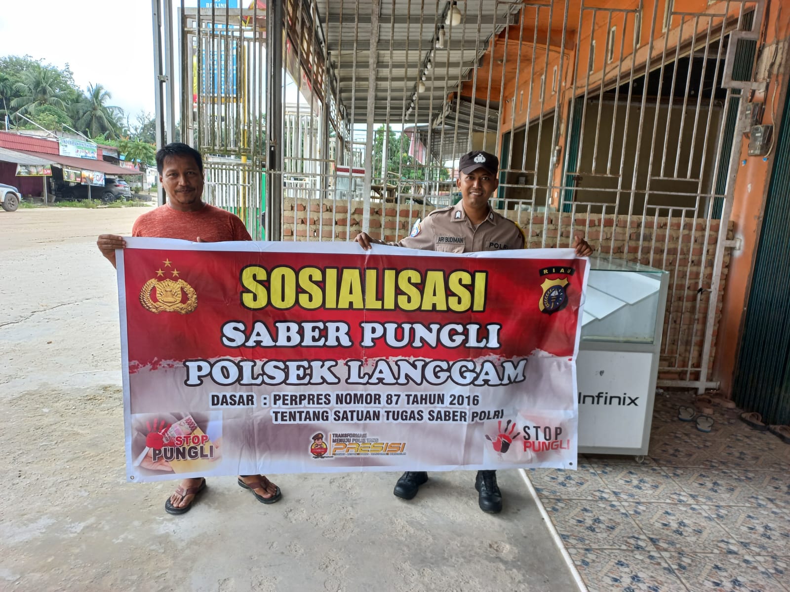 A1news.co.id || RIAU || Polsek Langgam, melalui AIPDA Hutagalung bersama satu personil Polsek Langgam, telah melaksanakan kegiatan Sosialisasi Saber Pungli dan Cegah Pungli di wilayah hukum Polsek Langgam, Kegiatan ini bertujuan untuk memberikan pemahaman kepada masyarakat dan petugas layanan publik terkait pentingnya menghindari praktik pungutan liar (pungli) yang tidak sesuai dengan ketentuan yang berlaku.