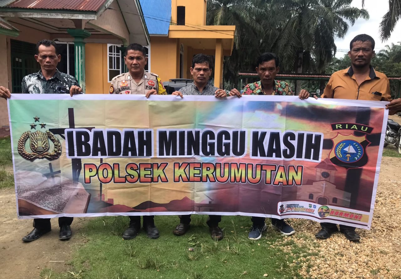 A1news.co.id | RIAU || Polsek Kerumutan, Polres Pelalawan, melaksanakan kegiatan Minggu Kasih di Gereja HKBP Bethesda, Desa Bukit Lembah Subur, Kecamatan Kerumutan, Kabupaten Pelalawan. Kegiatan yang dimulai sekitar pukul 10.00 WIB ini dipimpin oleh Kanit Intelkam Polsek Kerumutan, AIPDA Charli WM, bersama personel Polsek Kerumutan yang beragama Kristen.