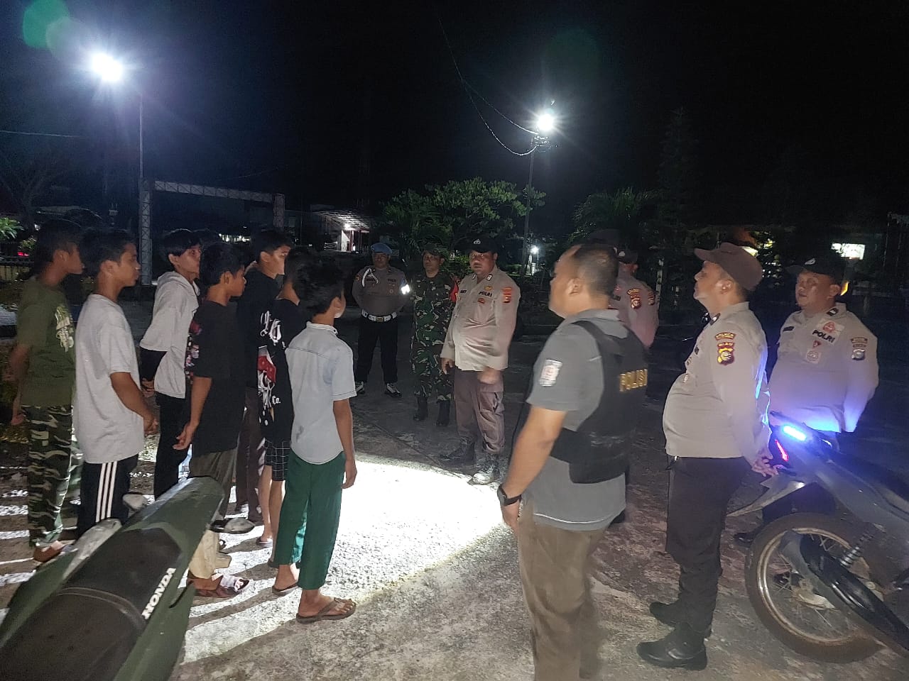 Selain melakukan patroli di titik-titik keramaian, petugas juga melakukan pengecekan kelengkapan kendaraan roda dua (R2) dan menyampaikan imbauan kepada pengendara agar tidak terlibat dalam kegiatan ilegal.