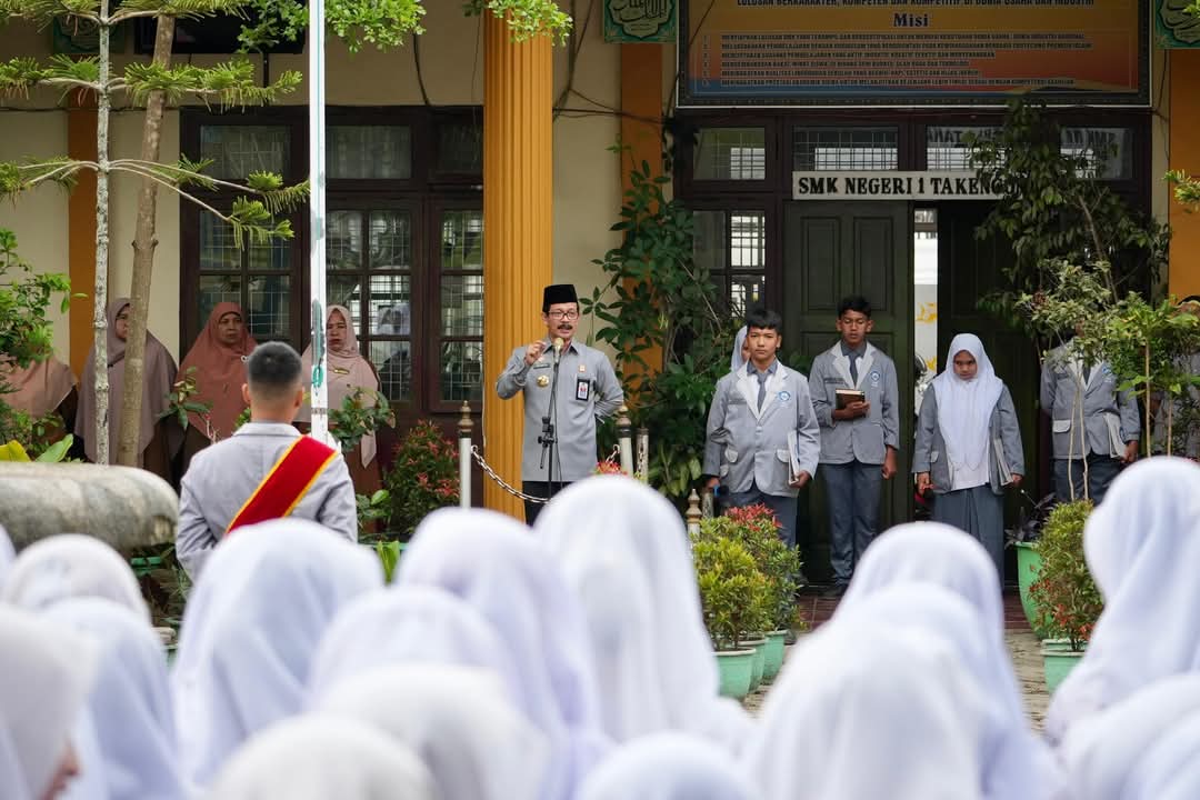 A1news.co.id|Takengon – Kepala Kantor Wilayah Kementerian Hukum Aceh Meurah Budiman menjadi Pembina Upacara di SMK Negeri 1 Takengon