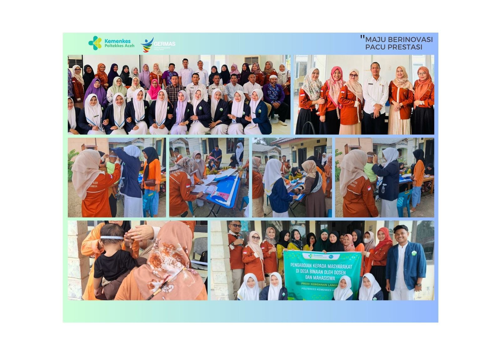 “Kegiatan pengabdian Desa Binaan yang secara rutin terselenggara ini merupakan bukti nyata kolaborasi yang harmonis antara Prodi Kebidanan Langsa Poltekkes Kemenkes Aceh dengan Pemko Langsa dalam upaya mewujudkan peningkatan derajat kesehatan,” jelasnya.