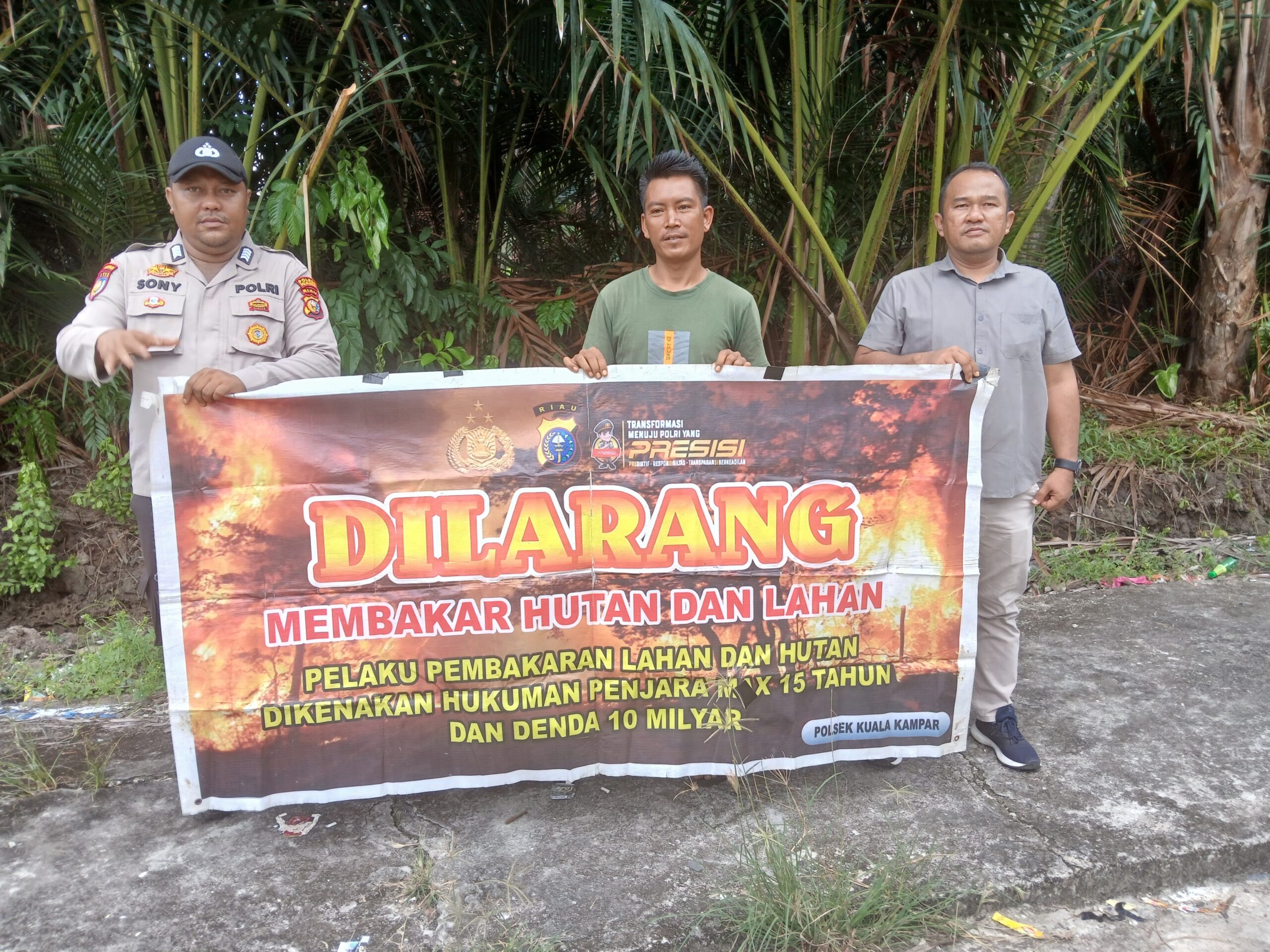 Kegiatan tersebut dipimpin langsung oleh personel piket Polsek Kuala Kampar, dengan fokus utama menyampaikan Maklumat Kapolda Riau terkait larangan membuka hutan dan lahan dengan cara membakar.