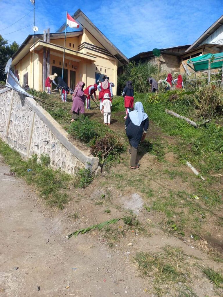 Sementara ibu PKK dan para kader mengambil lokasi Jumat bersih di seputaran Kantor Reje Kampung.