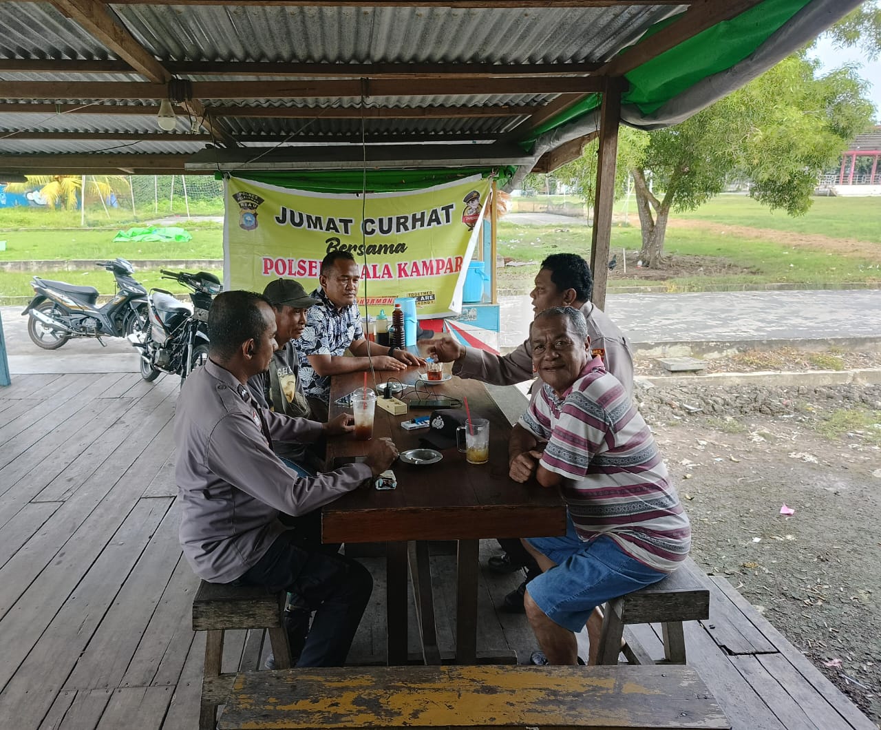 A1news.co.id | RIAU || Polsek Kuala Kampar Polres Pelalawan kembali menggelar kegiatan rutin Jum’at Curhat yang bertujuan mendekatkan Polri dengan masyarakat sekaligus menampung aspirasi dan keluhan warga. Kegiatan yang dipimpin langsung oleh Aipda Yogi Alexander ini berlangsung di Warung Bg. Edi, Kelurahan Teluk Dalam, Kecamatan Kuala Kampar, Jumat siang tadi.