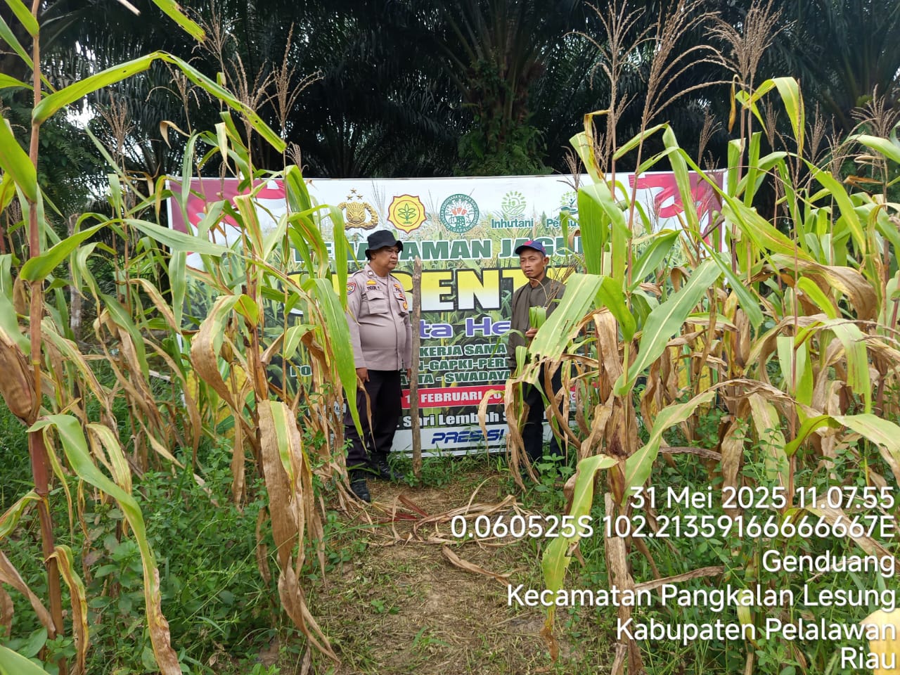 Kegiatan berlangsung sejak pukul 09.00 WIB di lahan pertanian jagung seluas 20 x 20 meter yang terletak di Jalan Simpang Wahit, Desa Genduang. Sebanyak 1.600 batang jagung telah ditanam sejak 16 Februari 2025, dan direncanakan akan dipanen pada 2 Juni 2025 mendatang.