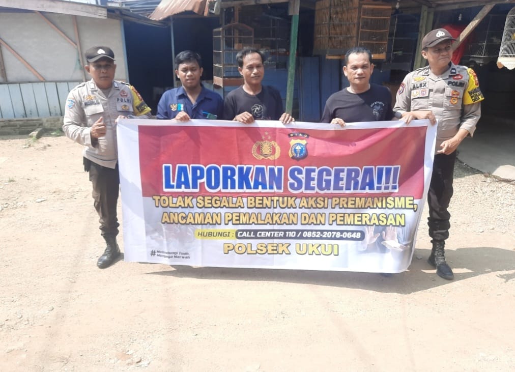 A1news.co.id | RIAU || Dalam upaya menciptakan lingkungan yang aman dan nyaman bagi masyarakat, Polsek Ukui terus bergerak melakukan pendekatan humanis. Pada Sabtu, 31 Mei 2025 pukul 11.00 WIB, personel Polsek Ukui yang dipimpin oleh Aipda D.H. Sihaloho melaksanakan kegiatan sosialisasi dan mengajak masyarakat untuk aktif menolak segala bentuk premanisme di wilayah hukum Polsek Ukui.