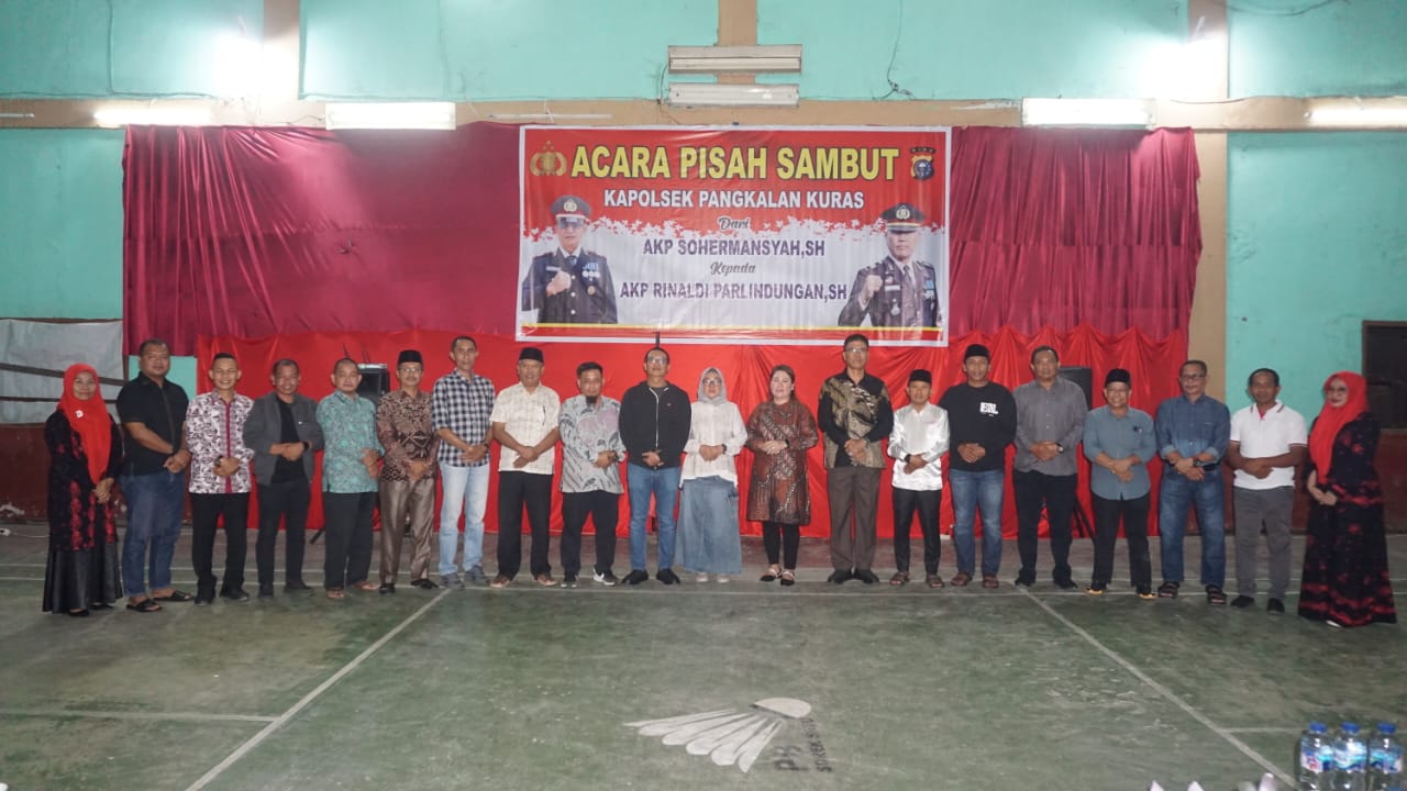 A1news.co.id | RIAU || Suasana haru dan keakraban menyelimuti acara pisah sambut Kapolsek Pangkalan Kuras yang digelar di GOR H.T.S. Jaafar, Kantor Camat Pangkalan Kuras, Sabtu malam (31/5/2025). Acara ini menjadi momentum serah terima jabatan dari AKP Sohermansyah, SH kepada AKP Rinaldi Parlindungan Situmeang, SH yang kini resmi menjabat sebagai Kapolsek Pangkalan Kuras yang baru.