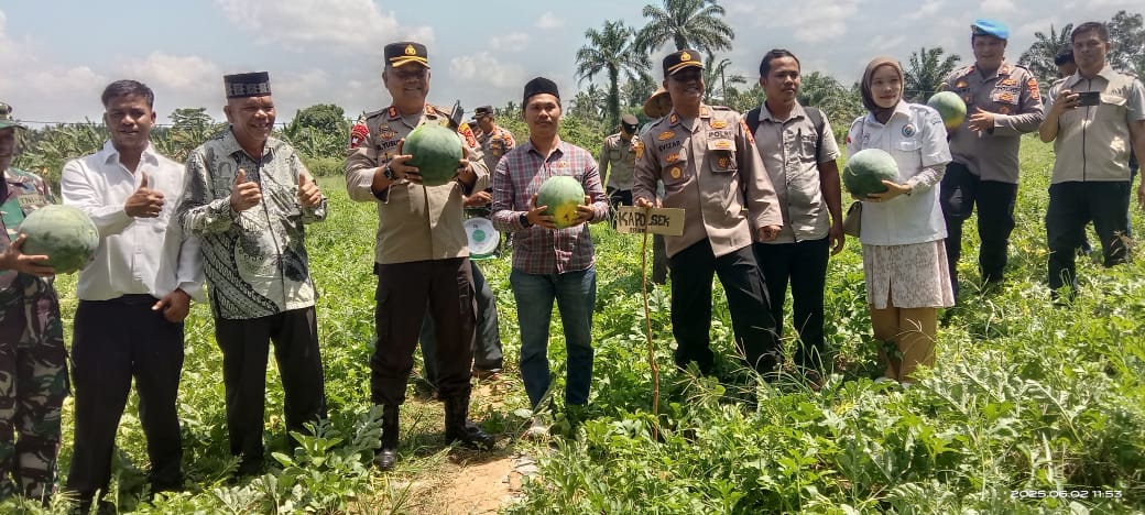Kapolres Subulussalam dan pejabat lainnya hadir untuk memberikan dukungan dan apresiasi kepada masyarakat desa yang telah berhasil mengembangkan pertanian semangka.