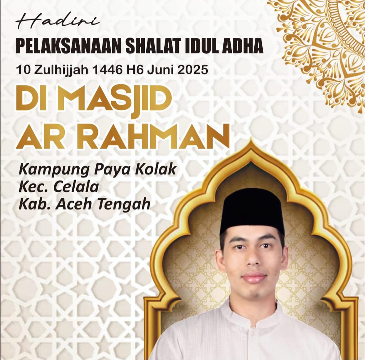 A1news.co.id|Takengon – Pelaksanaan shalat Idul Adha, 10 Zulhijjah 1446 H bertepatan Jumat 6 Juni 2025 M di halaman masjid Ar Rahmah Kampung Paya Kolak Kecamatan Celala Kabupaten Aceh Tengah.