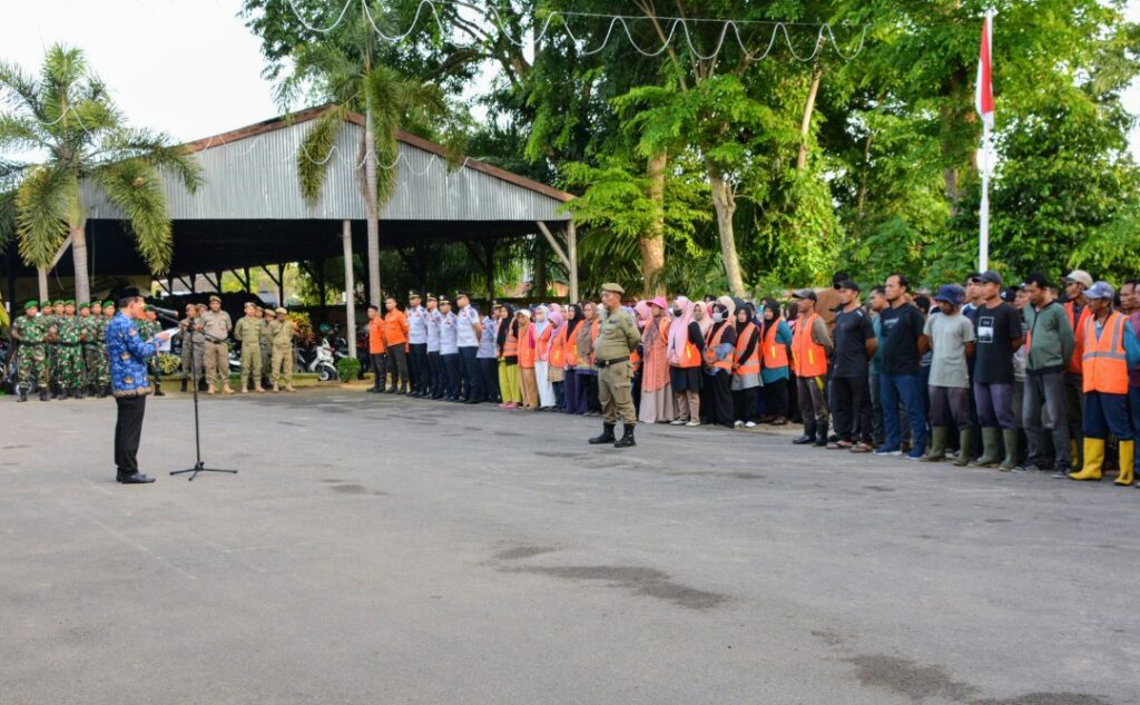 Asisten II Bidang Perekonomian dan Pembangunan Ali Musafah, memimpin Apel di Halaman Kantor Dinas Lingkungan Hidup Kota Langsa.