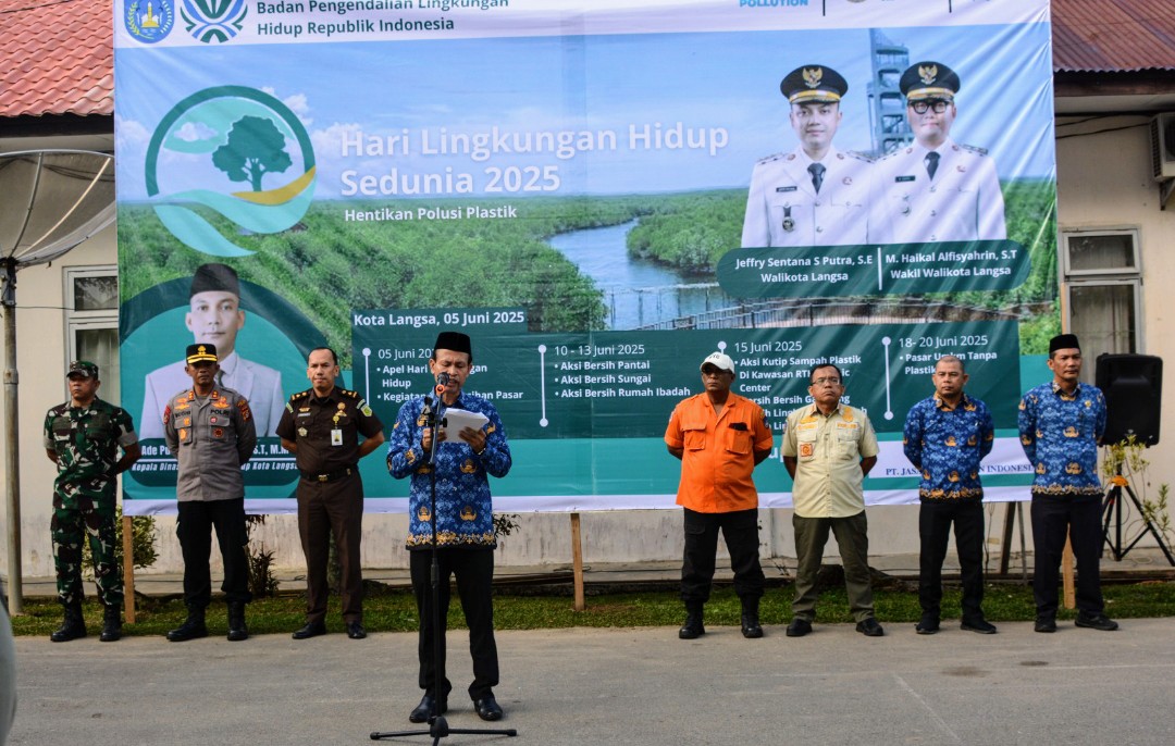 Kota Langsa – Dinas Lingkungan Hidup (DLH) Pemerintah Kota (Pemko) Langsa menggelar apel memperingati Hari Lingkungan Hidup (HLH) Sedunia, dengan tema “Hentikan Polusi Plastik”, Kami 05 Juni 2025.