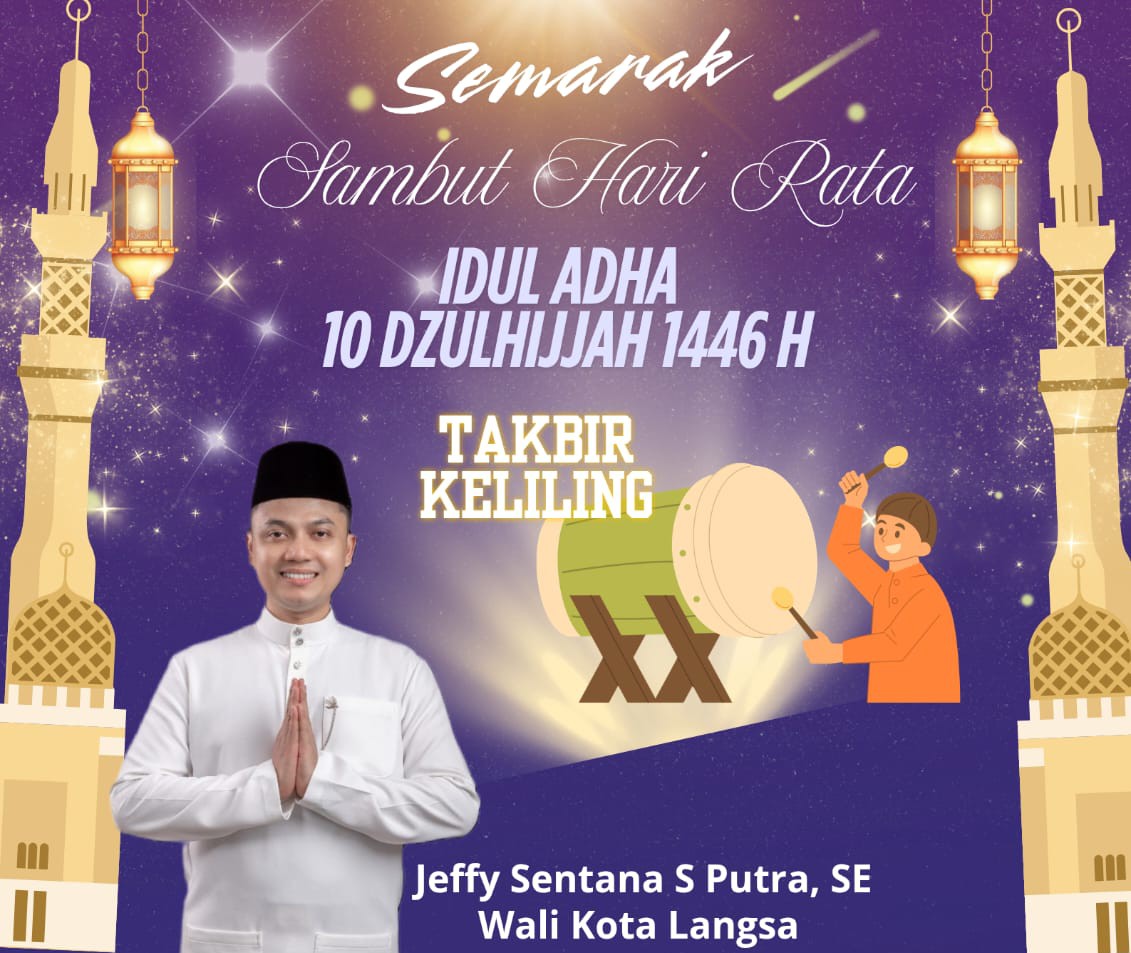 Wali Kota Langsa Jeffry Sentana S Putra, SE, mengajak seluruh masyarakat Kota Langsa untuk memeriahkan pawai takbir malam ini menyambut hari raya Idul Adha 1446 H.