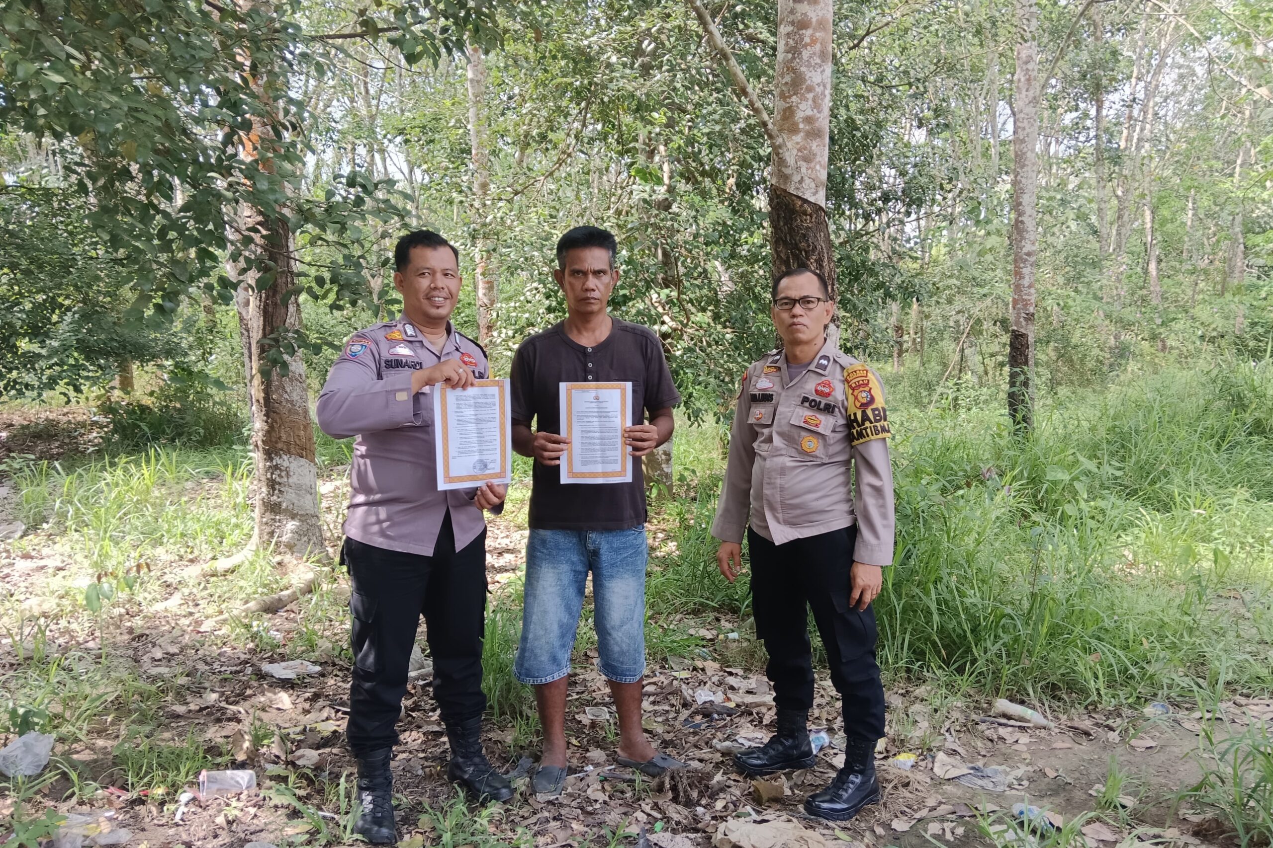 A1news.co,id | RIAU || Dalam upaya pencegahan kebakaran hutan dan lahan (karhutla), Polsek Pangkalan Lesung melakukan patroli serta menyebarkan Maklumat Kapolda Riau tentang larangan membakar hutan dan lahan pada Jumat siang, 27 Juni 2025.