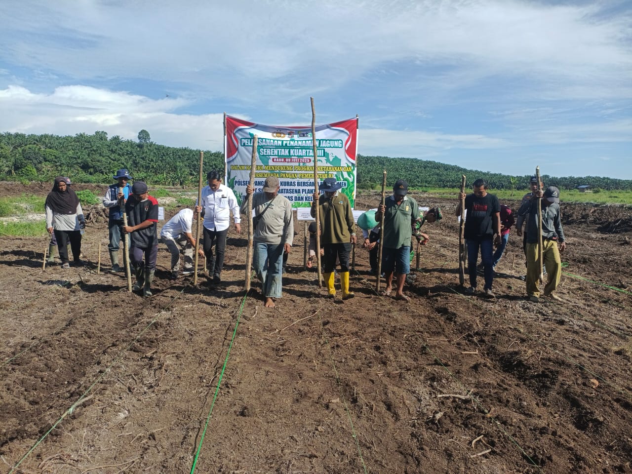 Penanaman berlangsung sejak pukul 14.00 WIB dan melibatkan sejumlah unsur pemerintahan, kepolisian, TNI, dan masyarakat tani setempat. Luas lahan yang ditanami mencapai dua hektare dengan menggunakan bibit jagung pipil merek Sage 01 sebanyak 30 kilogram. Lokasi penanaman tercatat pada koordinat 0°6’33.324″N, 101°57’12.846″E.