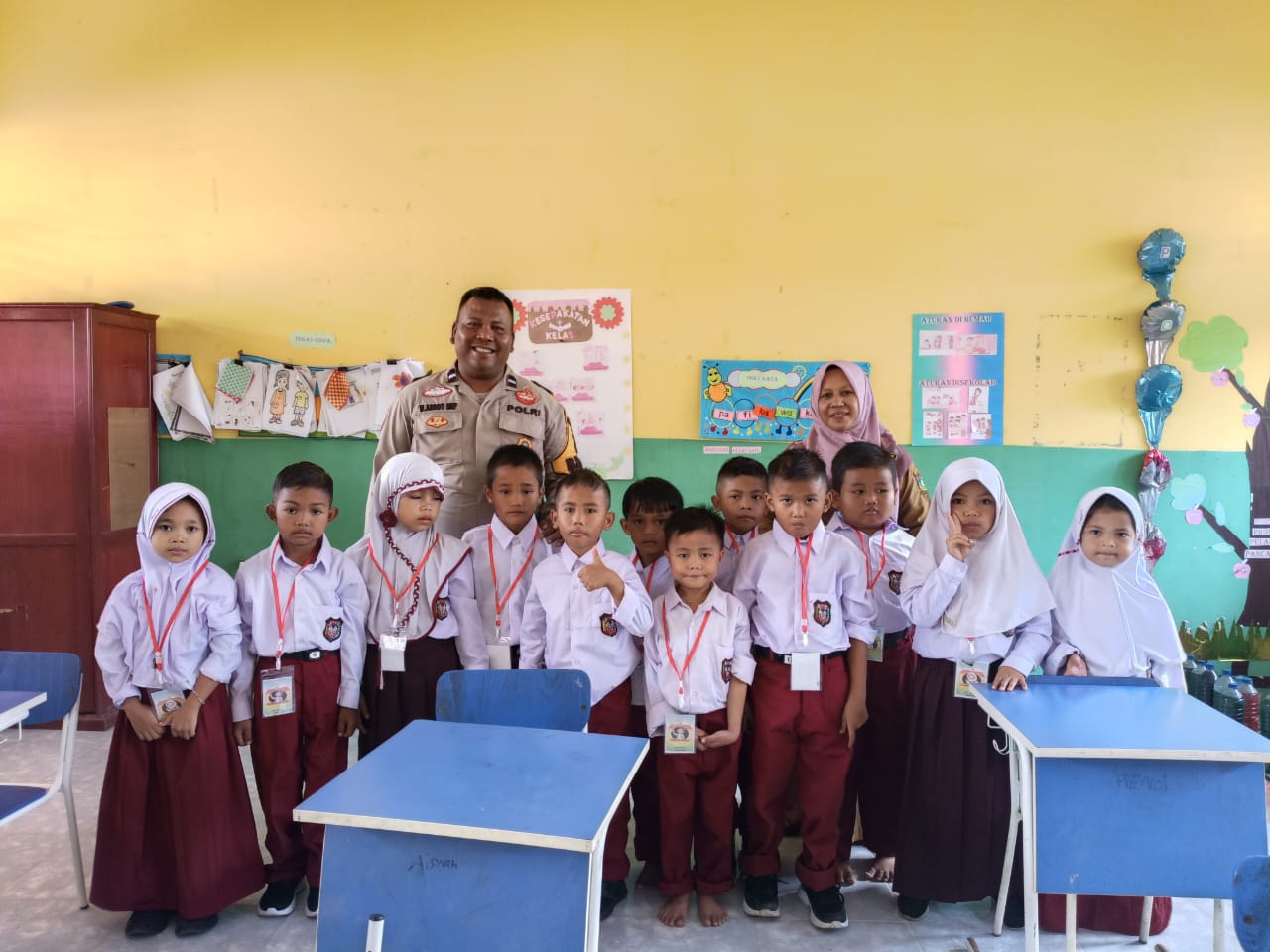 A1news.co.id|Kampar- Aipda Wawan Asroy Harahap, Bhabinkamtibmas Desa Merangin, menunjukkan kepeduliannya terhadap pembinaan karakter dan penanaman nilai-nilai Kamtibmas sejak usia dini. Selasa (15/7/2025).