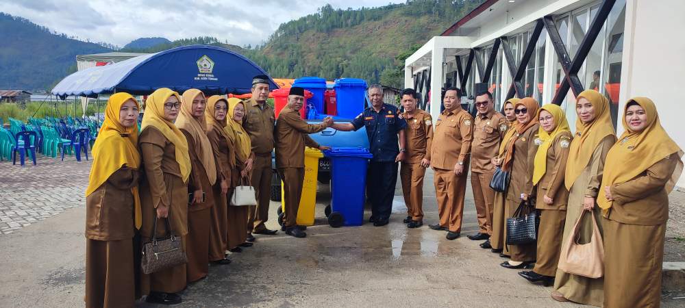 A1news.co.id|Takengon – Dukung program Bupati Haili Yoga “Aceh Tengah Bersih”, Kepala Sekolah Tingkat TK, SD dan SMP Se Kabupaten Aceh Tengah serahkan tong sampah.