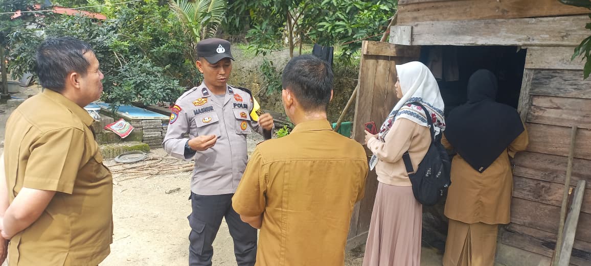 Pada Selasa (15/7), Aipda Masnur, SH, selaku Bhabinkamtibmas Desa Pematang Tinggi dan Desa Beringin Makmur, bersama Kepala Dusun 2 dan Dinas Sosial Kabupaten Pelalawan yang dipimpin oleh Tengku Sukardi, melakukan kunjungan langsung ke kediaman Aini.