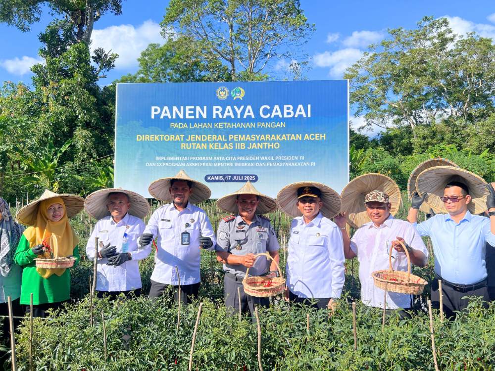 Panen raya kali ini meliputi panen cabai dan panen hasil budidaya ikan yang telah dikelola secara mandiri oleh Rutan Jantho bersama warga binaan.
