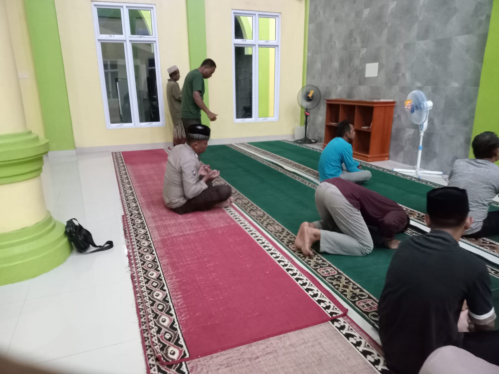 Selain penyuluhan, personel juga melakukan interaksi santai dengan jamaah yang masih berada di masjid sebagai bagian dari upaya pendekatan persuasif dan monitoring terhadap potensi gangguan keamanan.