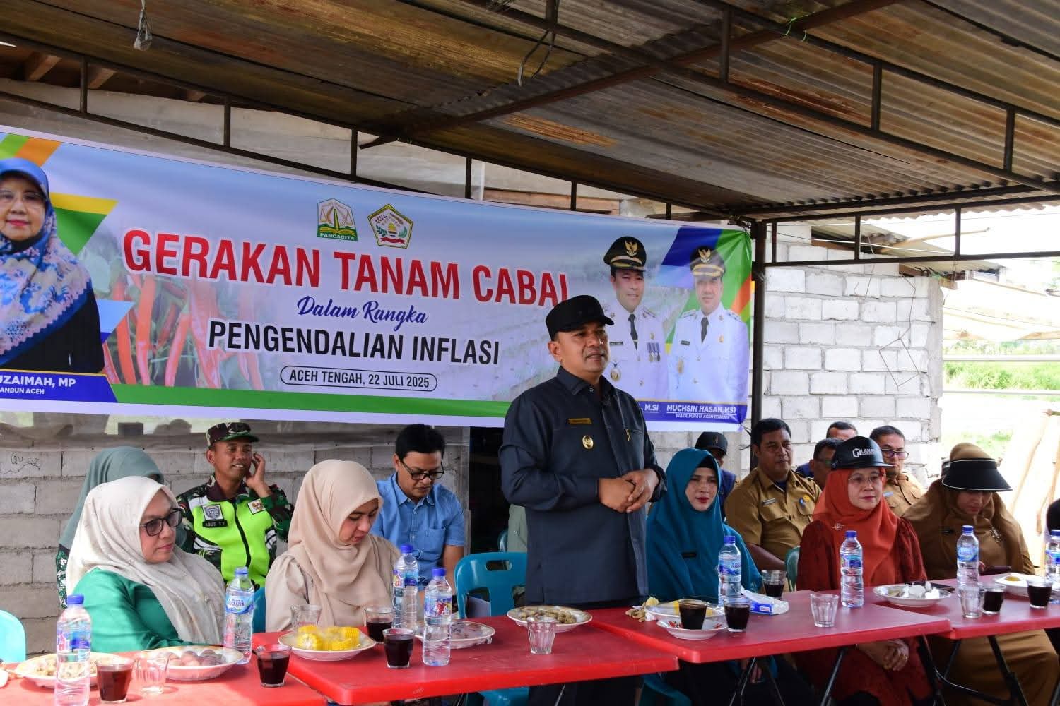 A1news.co.id|Takengon – Wakil Bupati Aceh Tengah, Muchsin Hasan hari ini, Selasa (22/07/2025) menghadiri kegiatan Gerakan Tanam Cabai di lahan Kelompok Tani Jaya Farmer Kampung Belang Mancung Bawah Kecamatan Ketol Kabupaten Aceh Tengah.