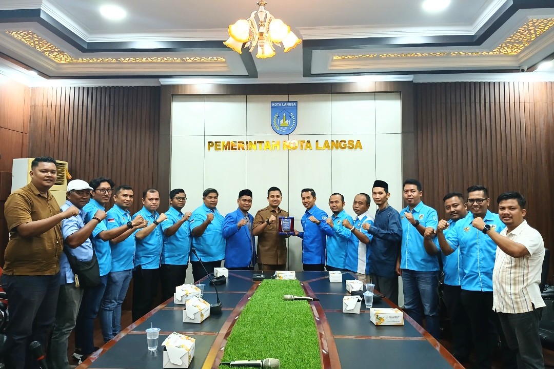 Penobatan ditandai dengan penyerahan plakat penghargaan dan Roadmap Branding City Langsa Kota Cerdas dari Ketua KNPI Dr Rizki Maulana didampingi para punggawa KNPI lainnya di ruang rapat Wali Kota Langsa, Selasa, 22 Juli 2025 petang.