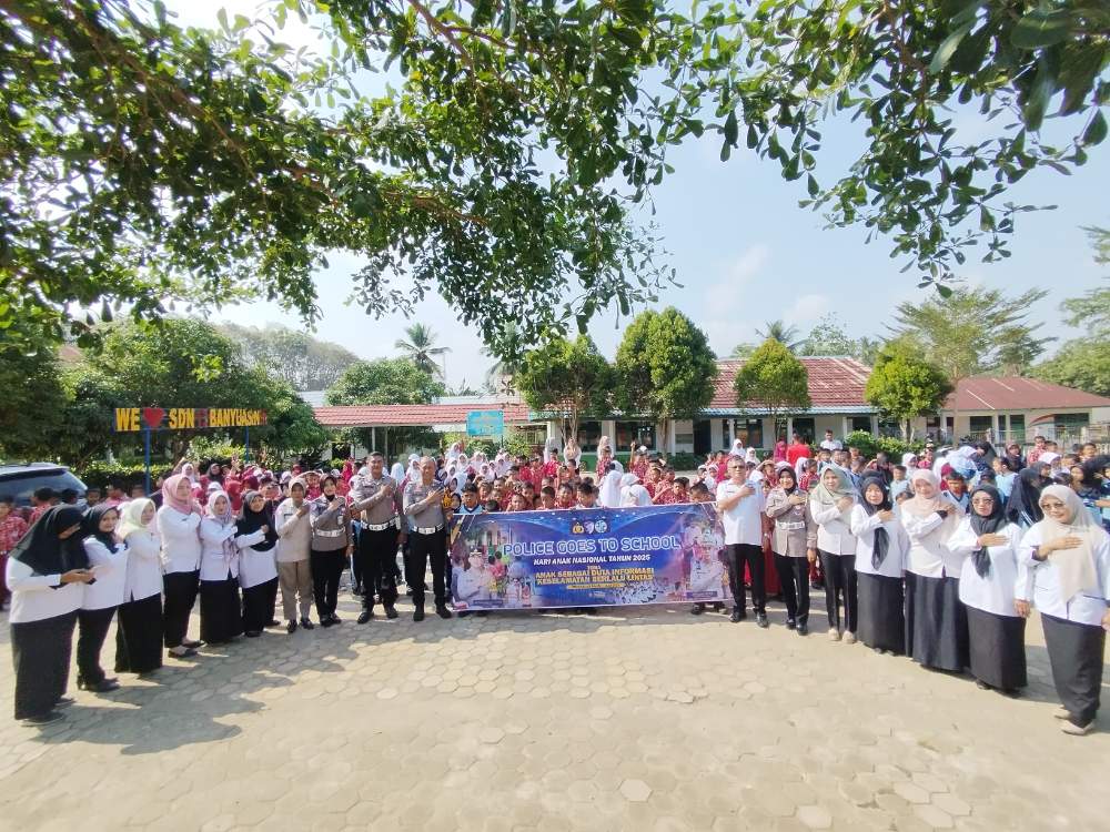 A1news.co.id|Banyuasin – Menyemarakkan Hari Anak Nasional, Satuan Lalu Lintas (Satlantas) Polres Banyuasin menggelar kegiatan edukatif “Police Goes To School” di SD Negeri 13 Kecamatan Banyuasin III, Rabu (23/7/2025) pagi.