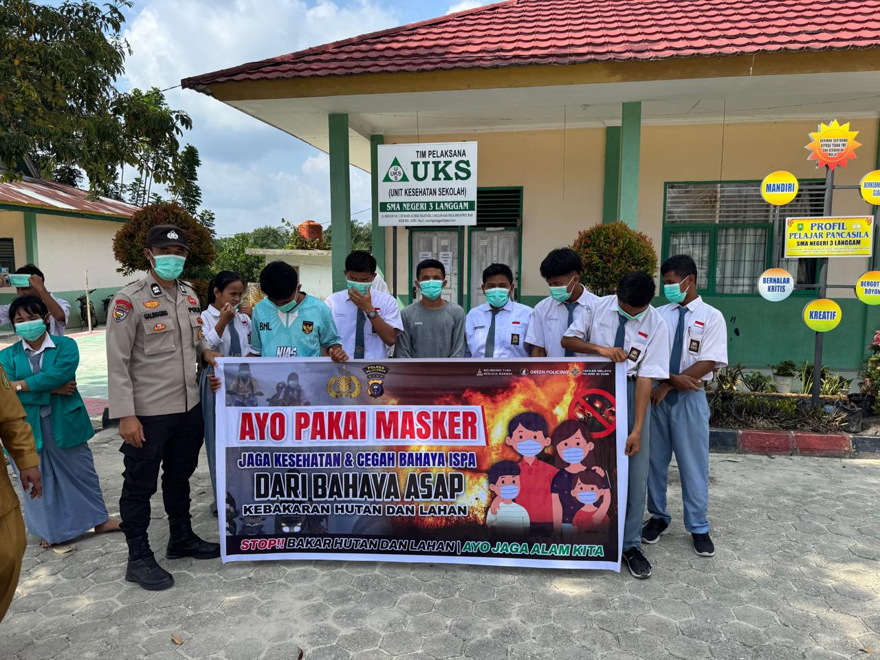 Cegah Dampak Asap Karhutla, Polsek Langgam Bagikan Masker ke Siswa SMAN 3