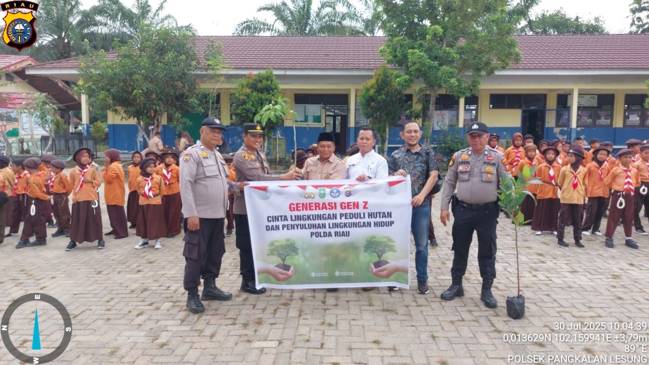 A1news.co.id | RIAU || Polsek Pangkalan Lesung melaksanakan program Green Policing yang bertujuan untuk mendukung kelestarian lingkungan dengan menanam pohon di SDN 009 Desa Sari Mulya, Kecamatan Pangkalan Lesung, Kabupaten Pelalawan. Kegiatan ini dilakukan pada Rabu, 30 Juli 2025, dengan melibatkan Kapolsek Pangkalan Lesung, AKP Lambok Hendriko, S.H., serta sejumlah anggota Polsek.