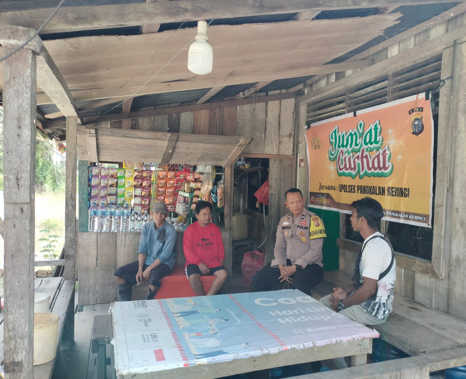 A1news.co.id | RIAU || Polsek Pangkalan Kerinci menggelar kegiatan Jumat Curhat di Desa Kuala Terusan, Kecamatan Pangkalan Kerinci, pada Jumat (01/08/2025) pagi. Kegiatan yang dihadiri oleh masyarakat setempat, Ketua RT, dan Bhabinkamtibmas tersebut bertujuan untuk mempererat komunikasi antara polisi dan warga, serta untuk menjaga kondusivitas wilayah.