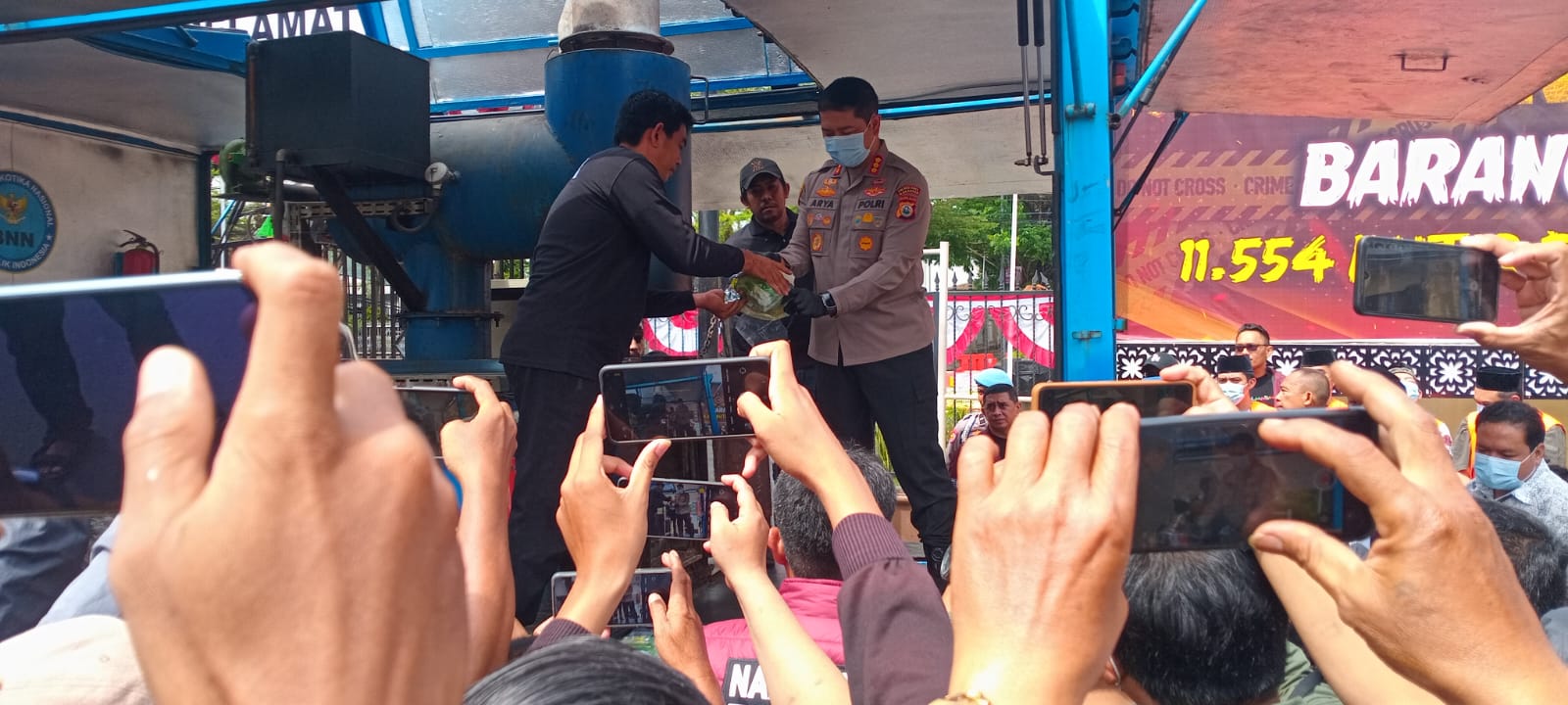 “Kami berharap pemusnahan ini dapat disosialisasikan kepada seluruh masyarakat sebagai bukti nyata bahwa aparat penegak hukum tidak pernah kendor dalam penanganan kasus narkotika,”tegasnya.