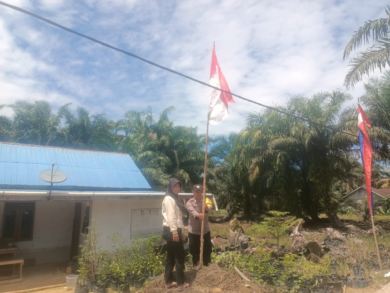 A1news.co.id | RIAU || Suasana bulan kemerdekaan mulai terasa di Desa Rantau Baru, Kecamatan Pangkalan Kerinci, Kabupaten Pelalawan. Menyambut Hari Ulang Tahun ke-80 Republik Indonesia, Bhabinkamtibmas Desa Rantau Baru, Bripka M. Yasir Arafat, bersama warga setempat bergotong royong memasang umbul-umbul dan bendera Merah Putih di sepanjang jalan desa, Selasa, 5 Agustus 2025.